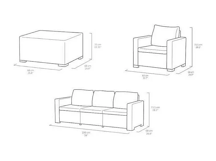 Salon complet de jardin Canapé 2 places et 2 fauteuils