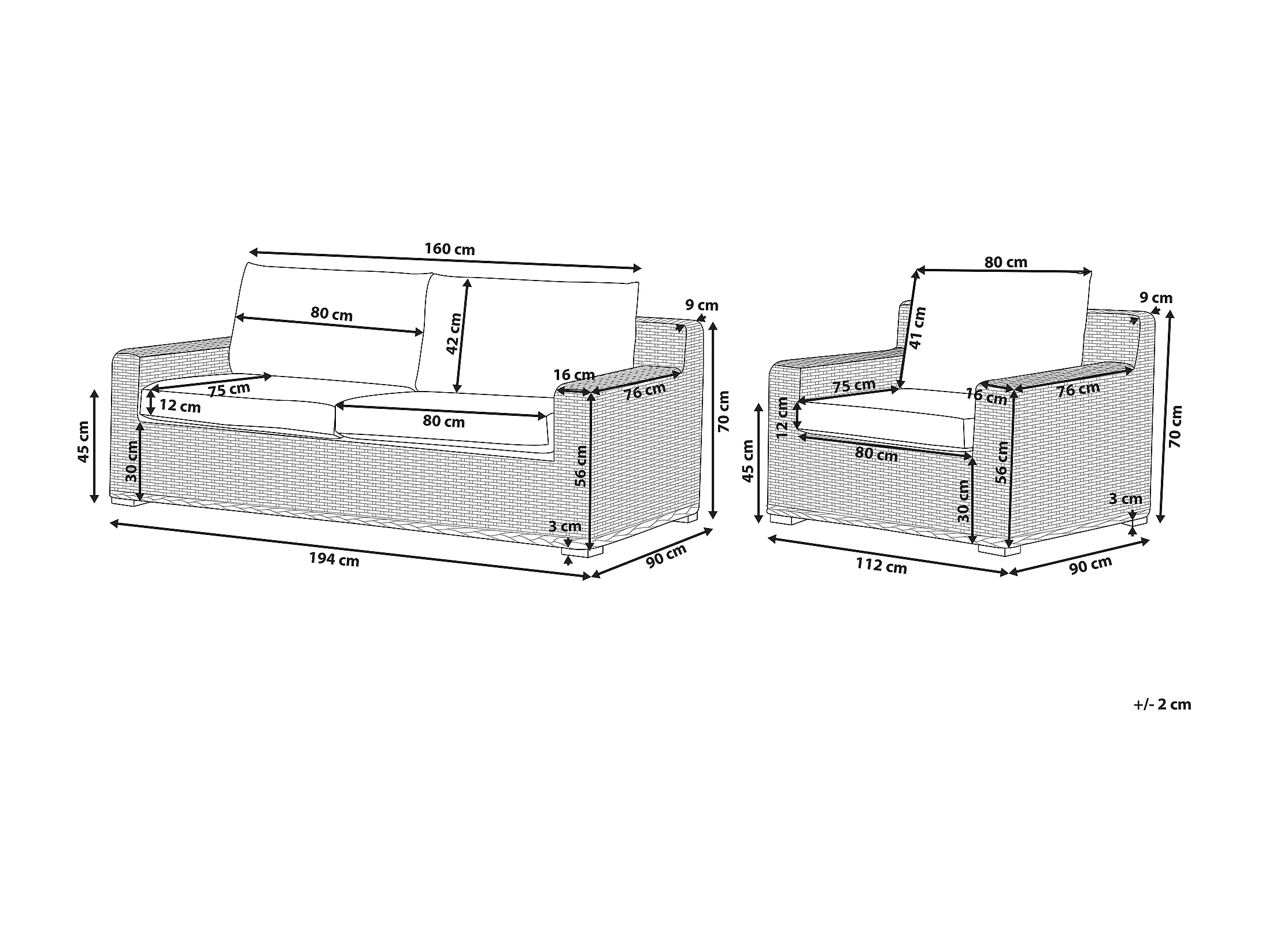 Ensemble de canapés de jardin 4 places ARDEA Rotin Marron clair