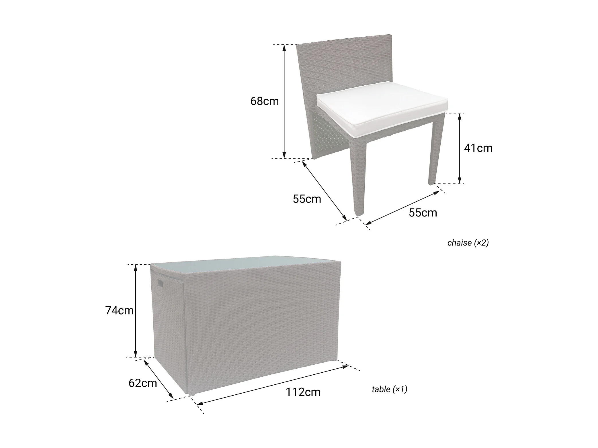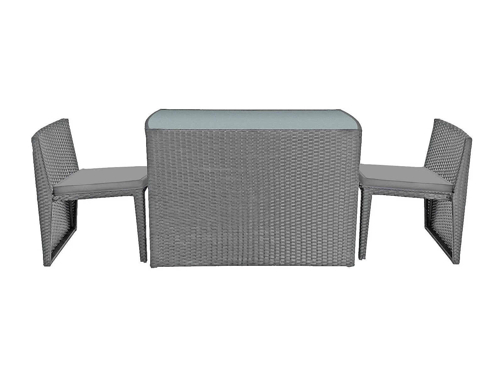 Salon de jardin encastrable SANTORIN en résine tressée grise 2 places - coussins gris