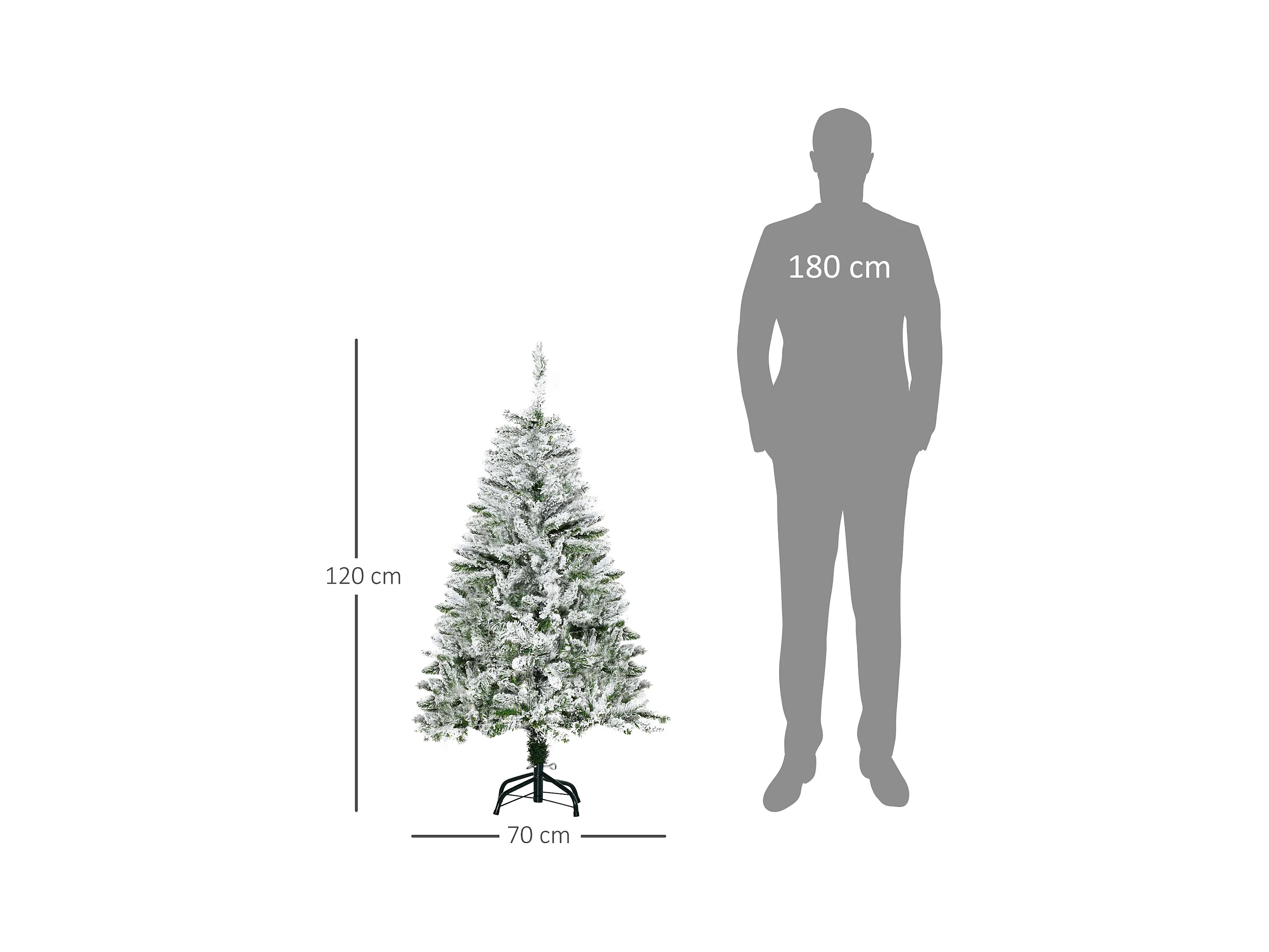 Sapin de Noël artificiel aspect enneigé Ø 70 x 120H cm 200 branches épines imitation Nordmann grand réalisme