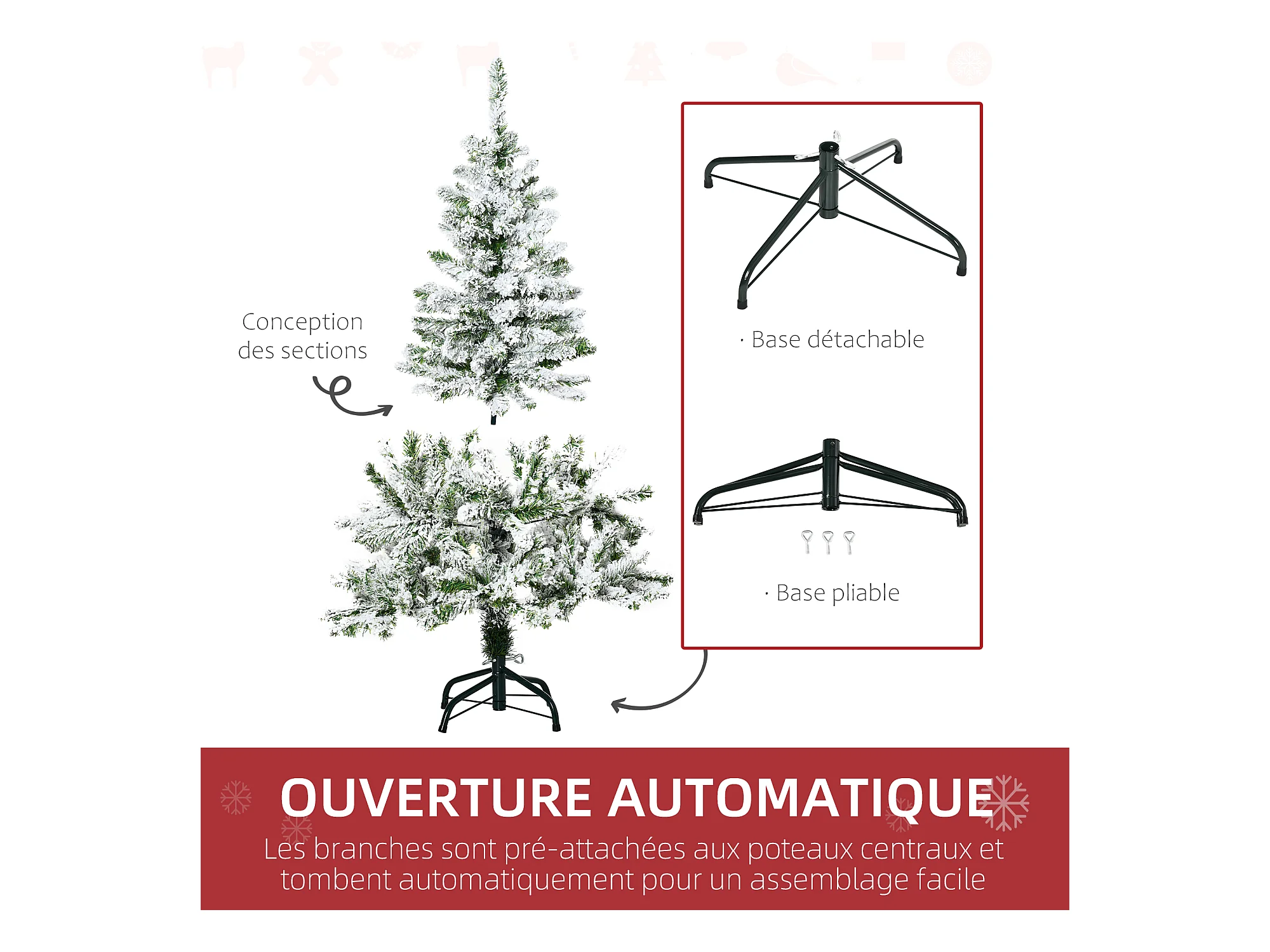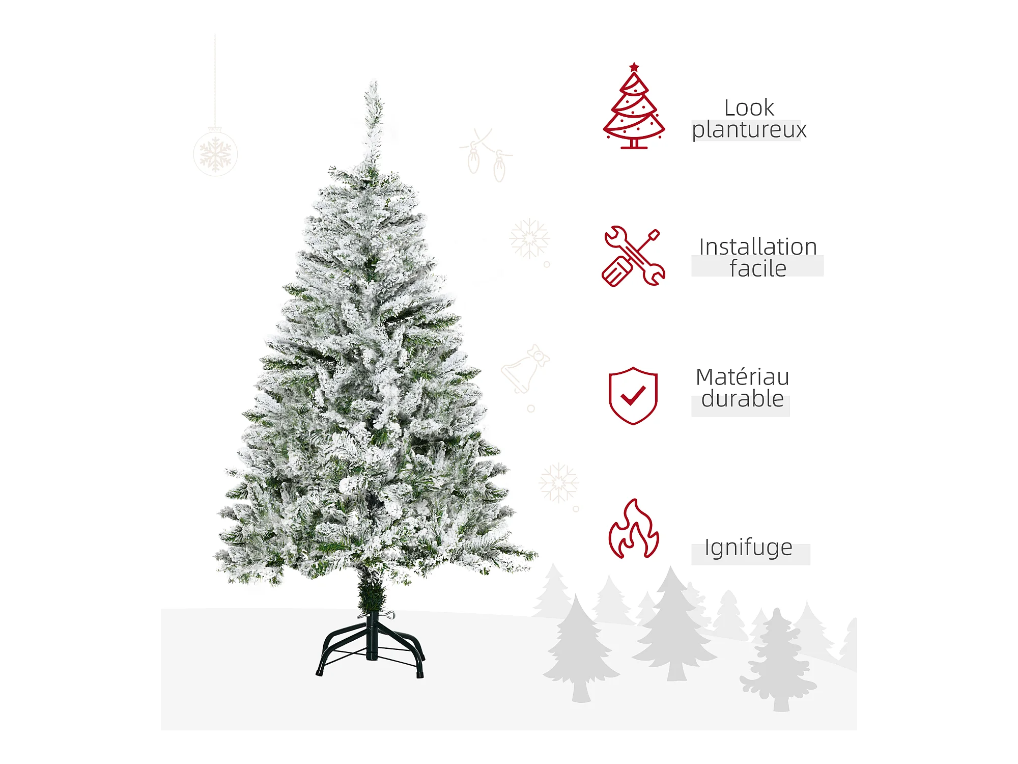 Sapin de Noël artificiel avec 28 pommes de pin arbre de Noël 269 branches enneigées support en acier socle pliable hauteur 120 cm vert