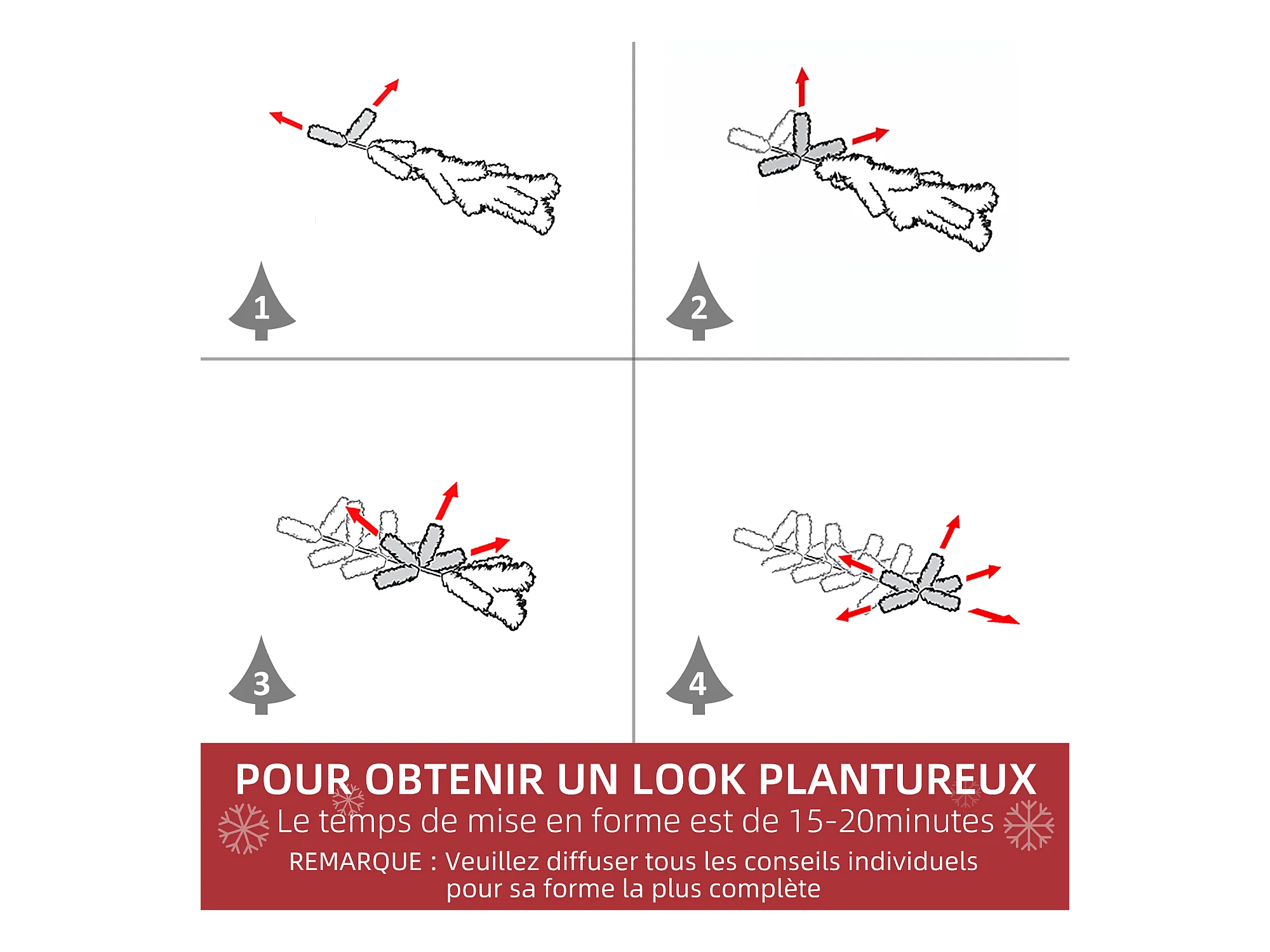 Sapin de Noël artificiel LED H.180 cm - sapin de Noël enneigé - 1321 branches 300 LED blanc chaud