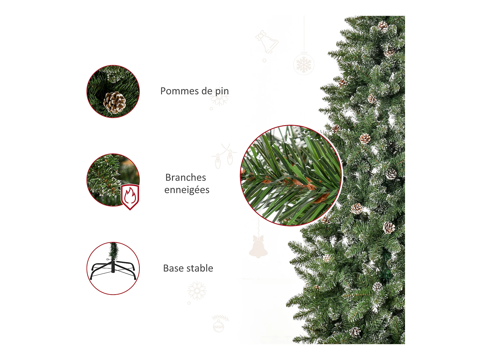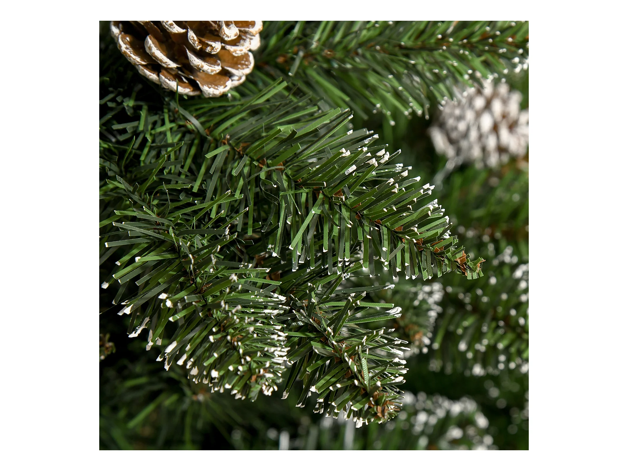 Sapin de Noël artificiel aspect enneigé Ø 86 x 180H cm 50 pommes de pin 718 branches épines imitation Nordmann grand réalisme