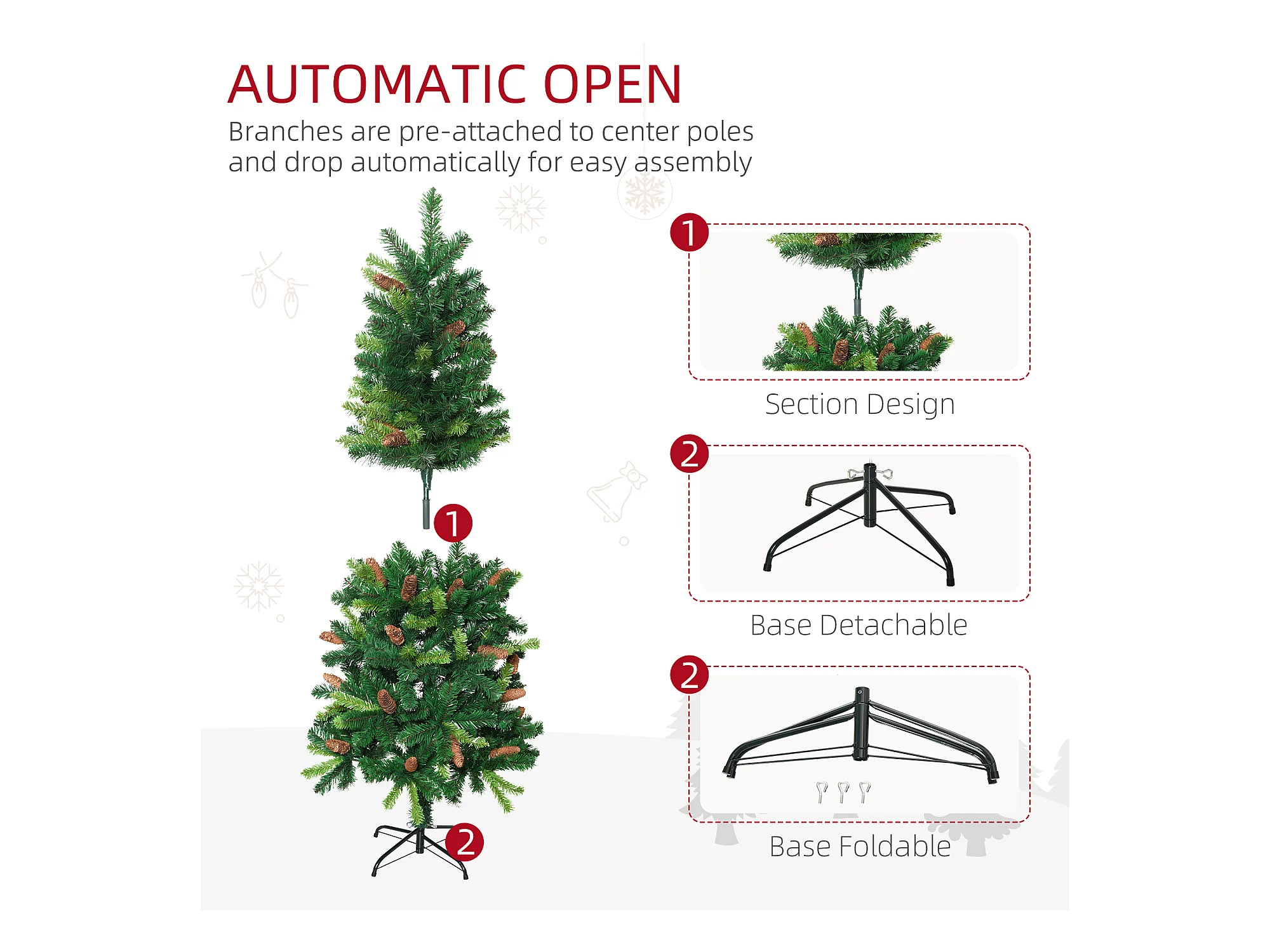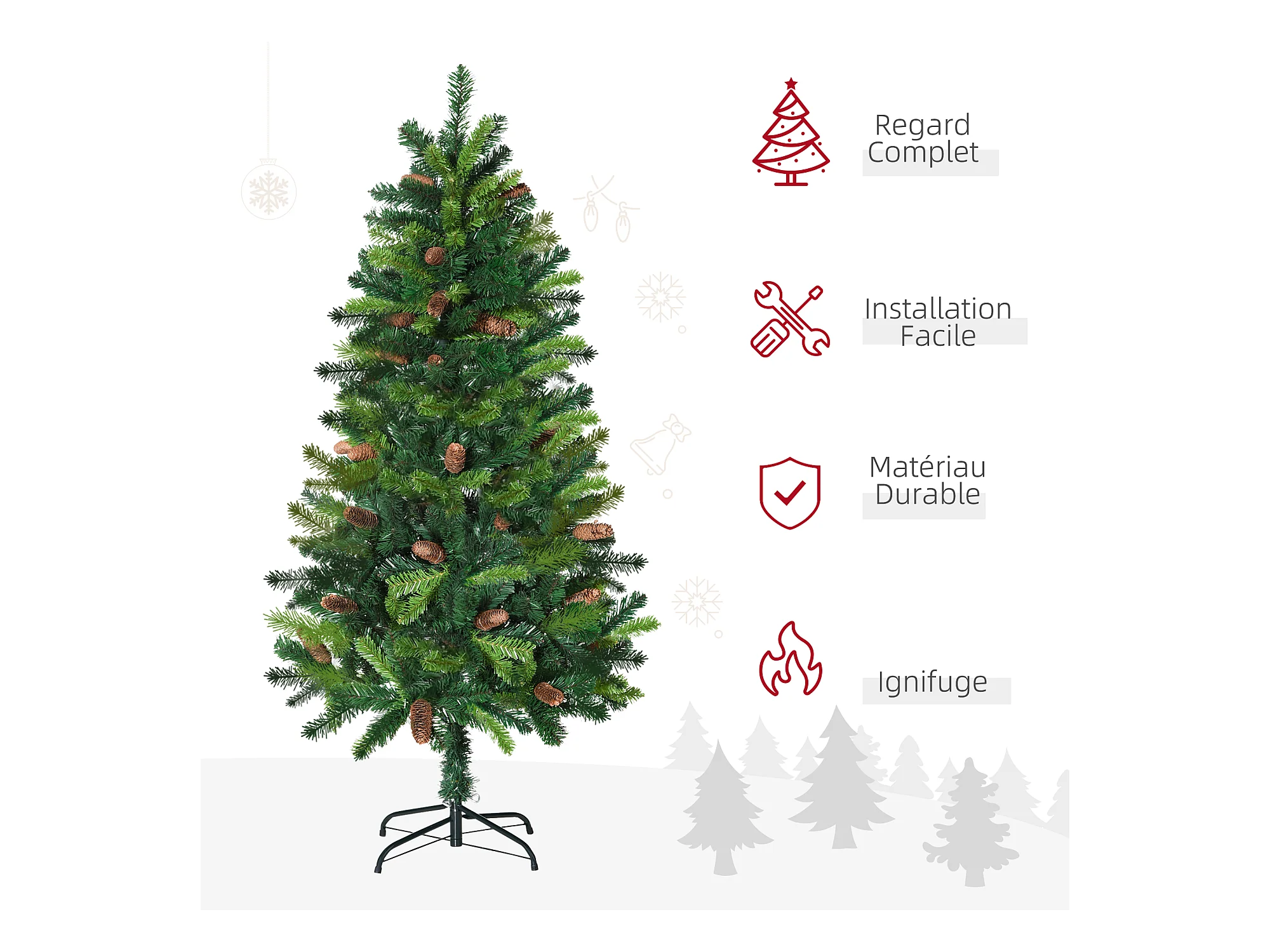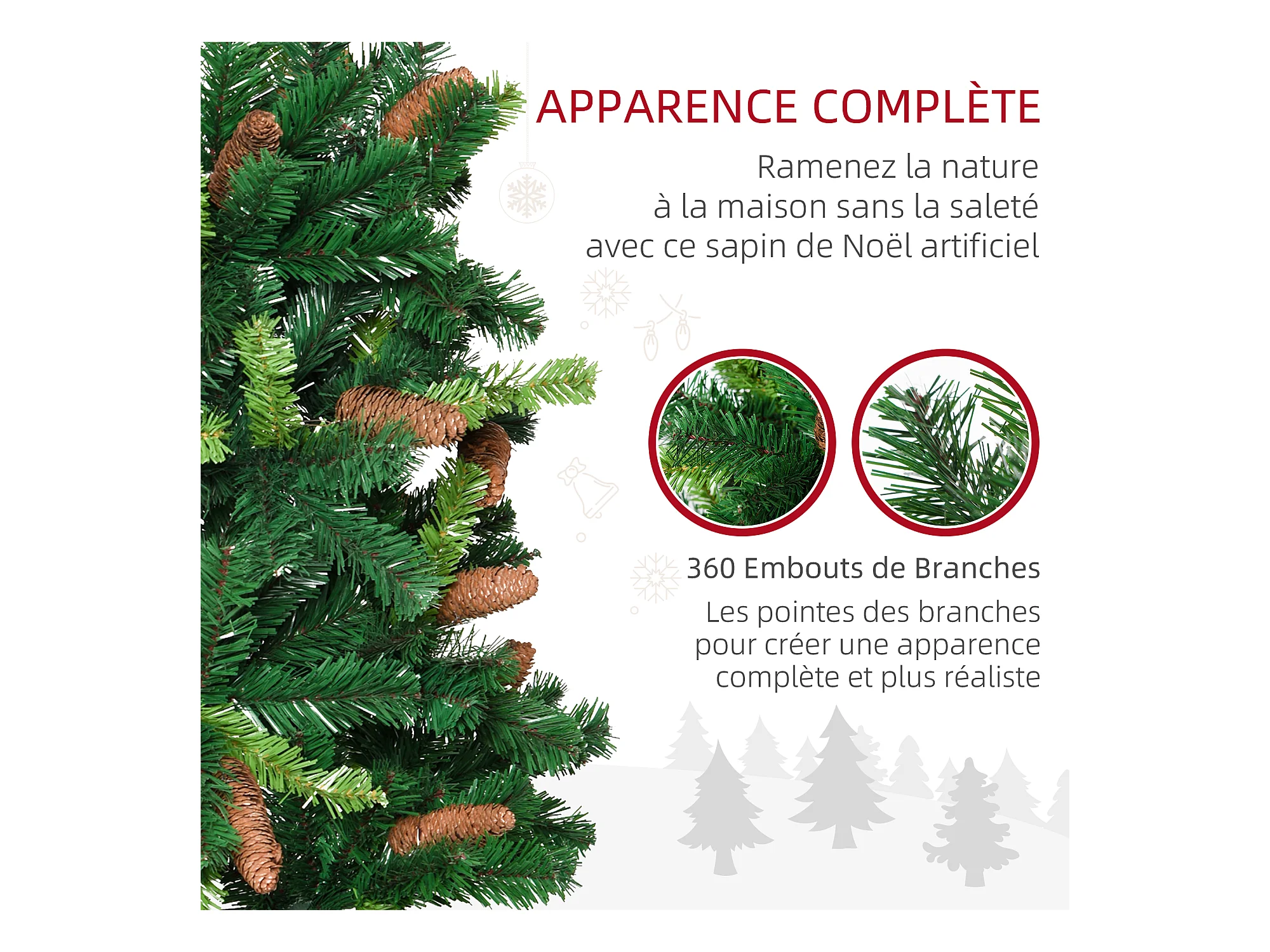 Sapin de Noël artificiel aspect réaliste Ø 60 x 150H cm 24 pommes de pin 360 branches imitation Nordmann