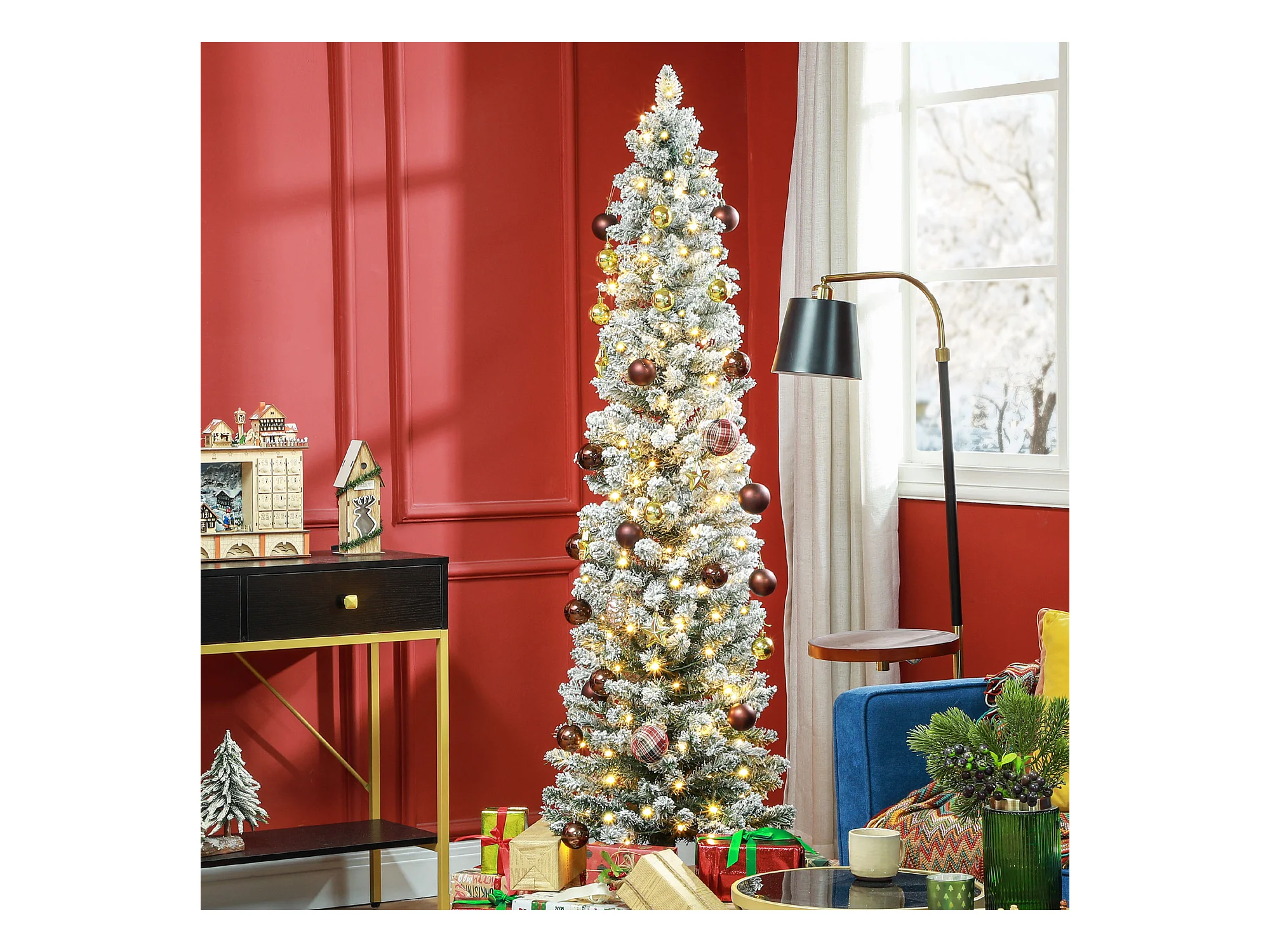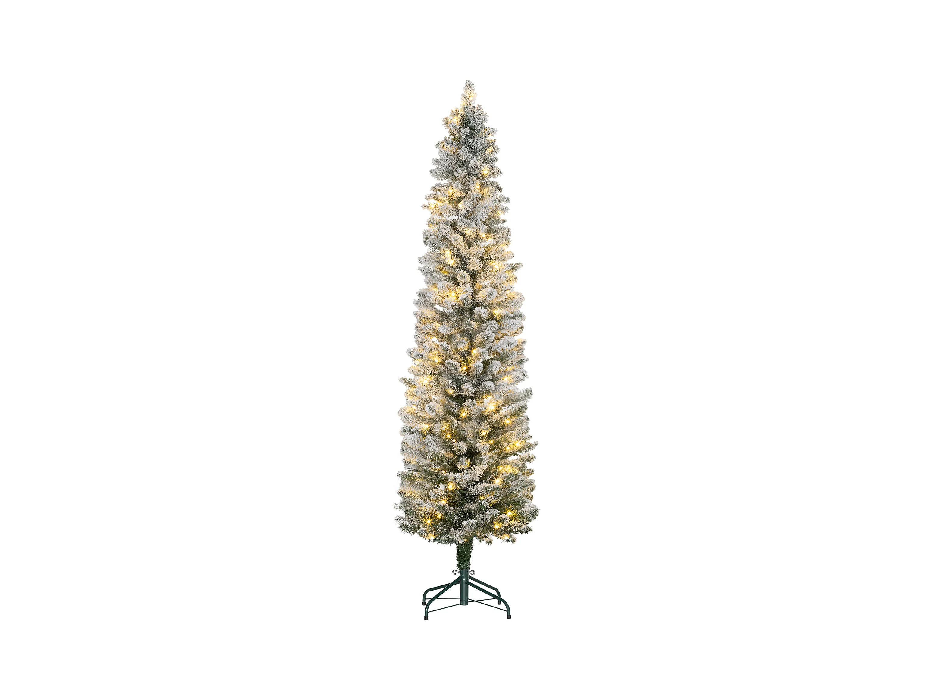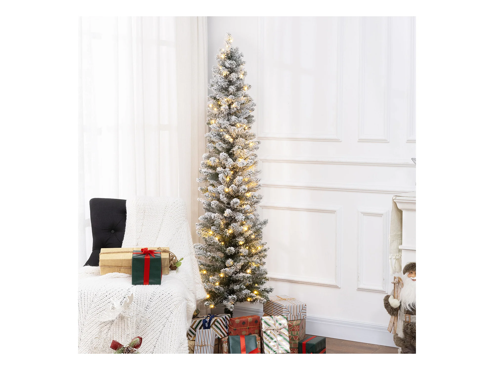 Sapin de Noël artificiel LED H.180 cm - sapin de Noël mince enneigé - 329 branches 150 LED blanc chaud