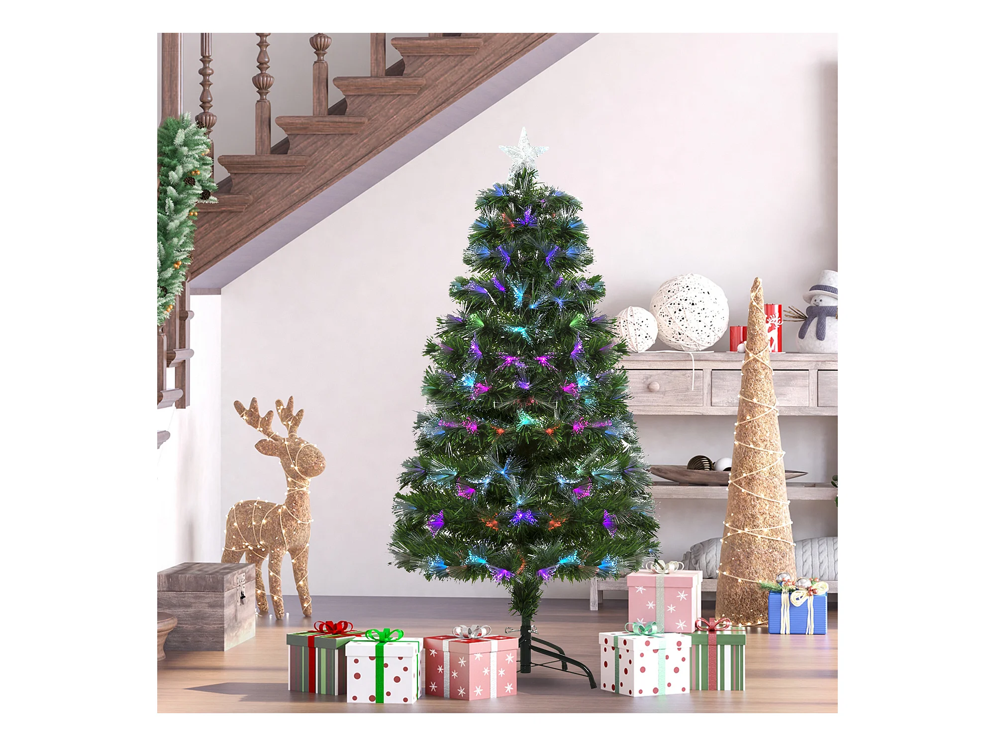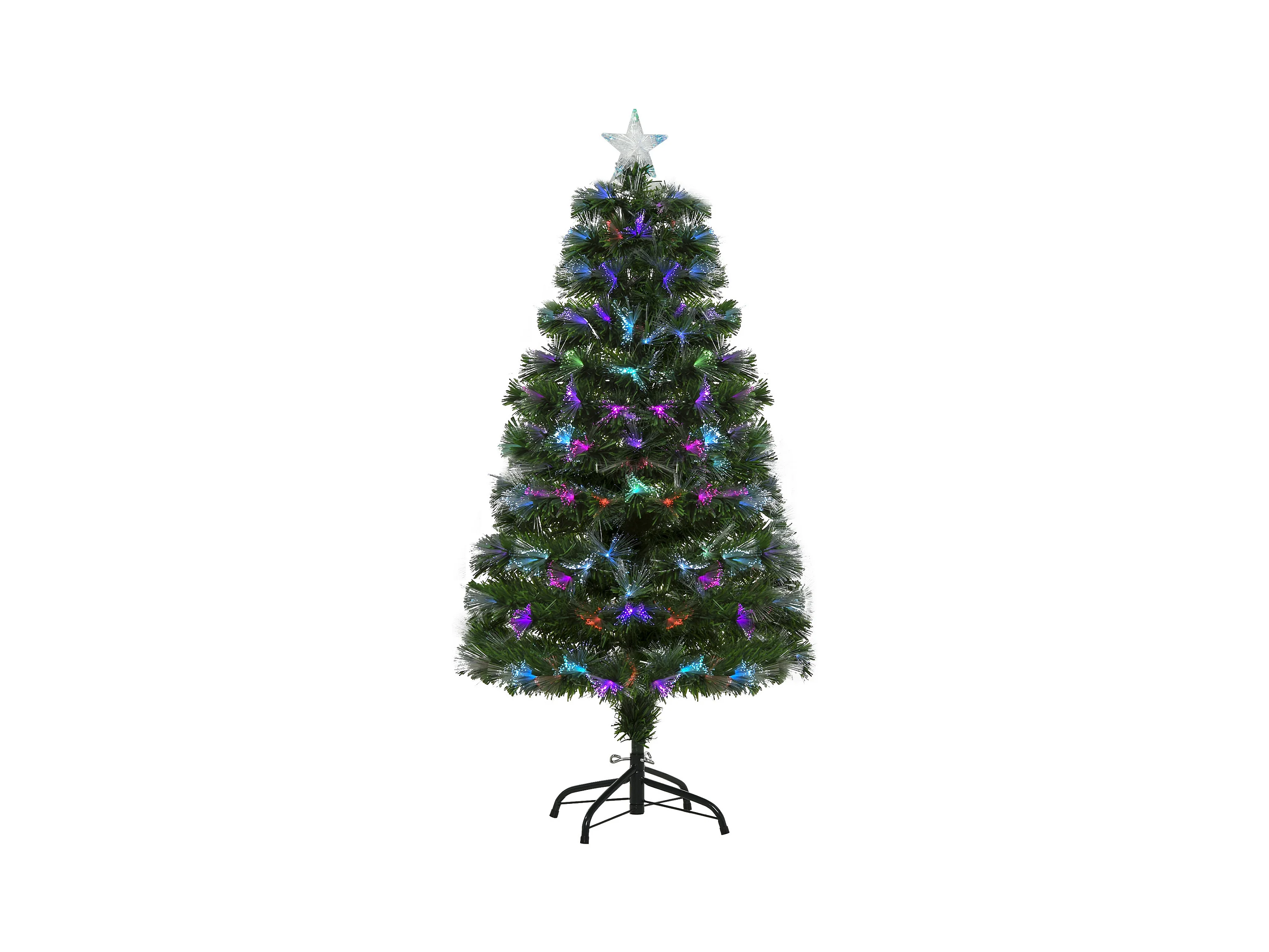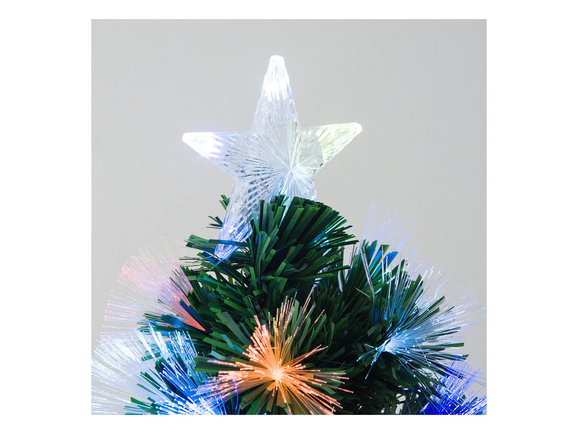 Sapin de Noël artificiel lumineux fibre optique LED multicolore + support pied Ø 60 x 120H cm 130 branches étoile sommet brillante vert