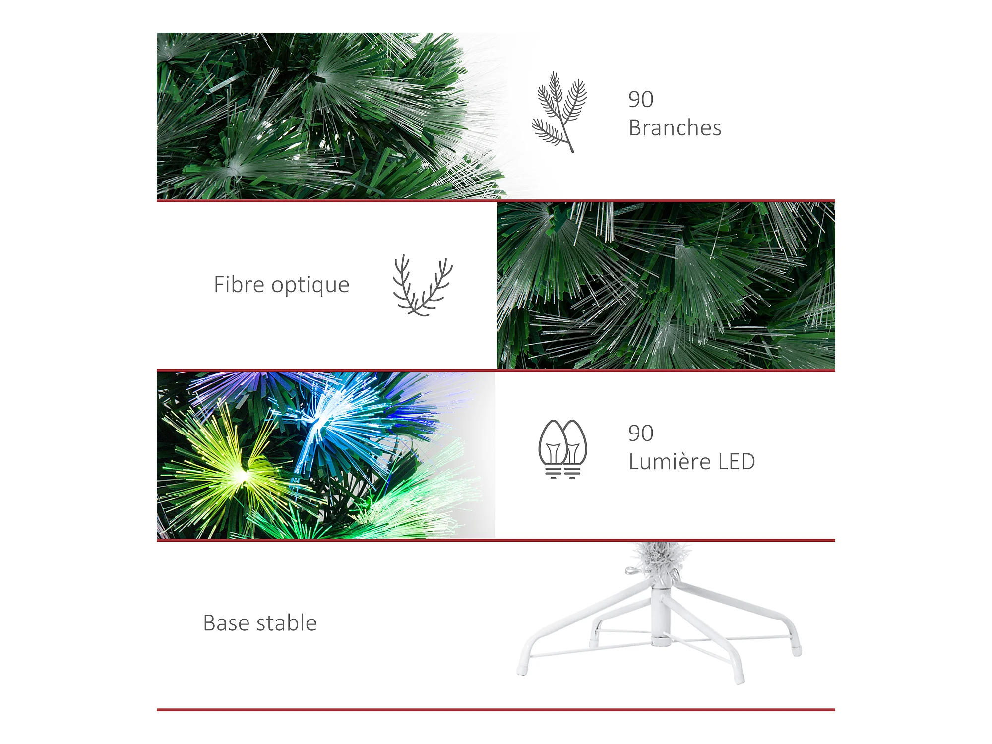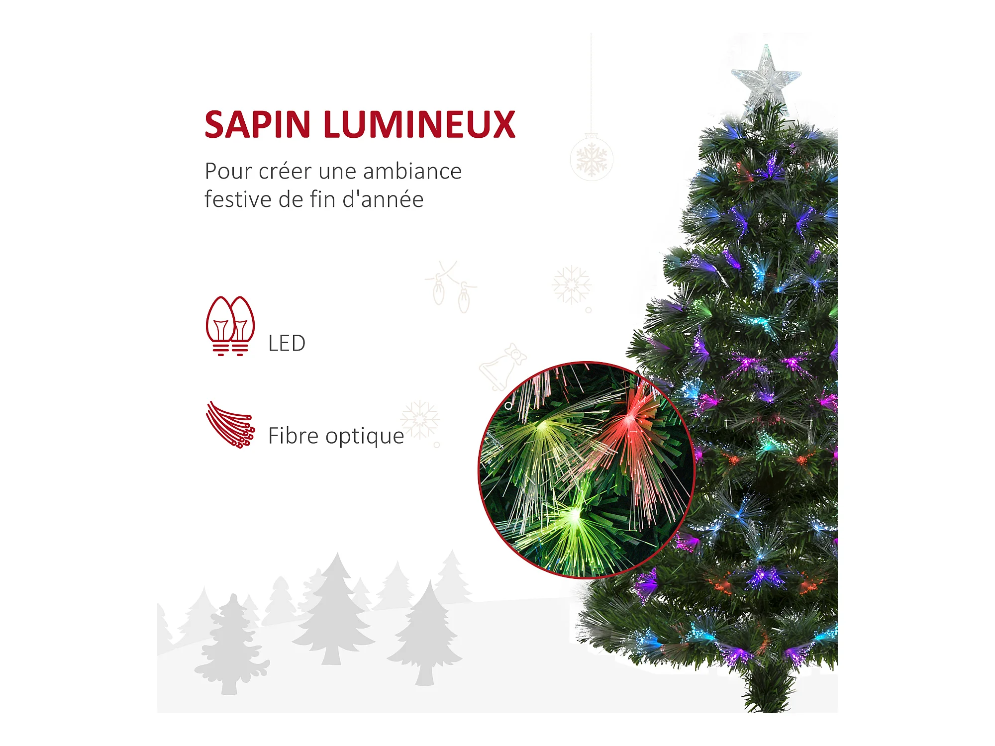 Sapin de Noël artificiel lumineux fibre optique multicolore + support pied Ø 75 x 150H cm 180 branches étoile sommet brillante vert