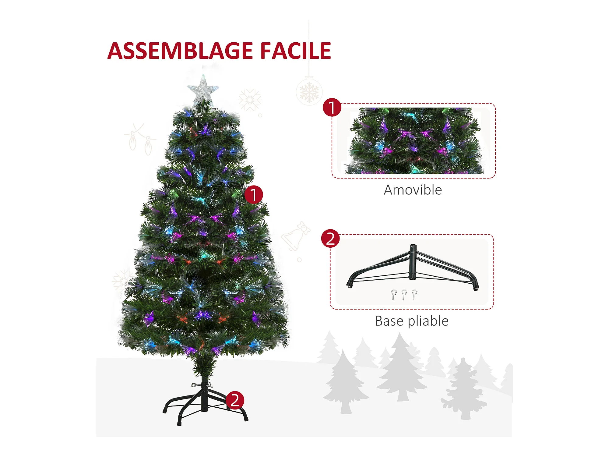 Sapin de Noël artificiel lumineux fibre optique LED multicolore + support pied Ø 66 x 120H cm 130 branches étoile sommet brillante vert