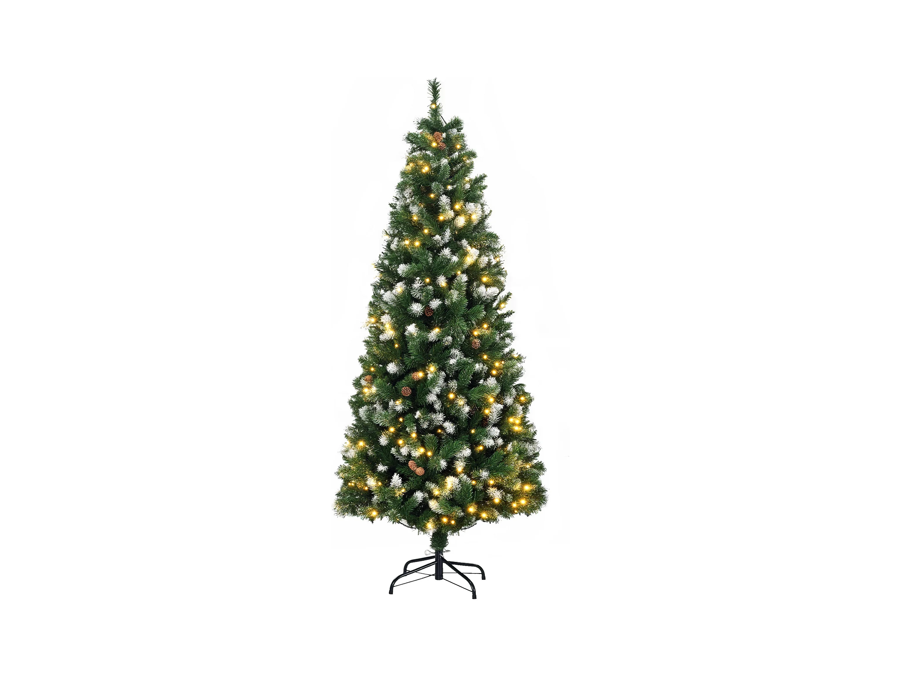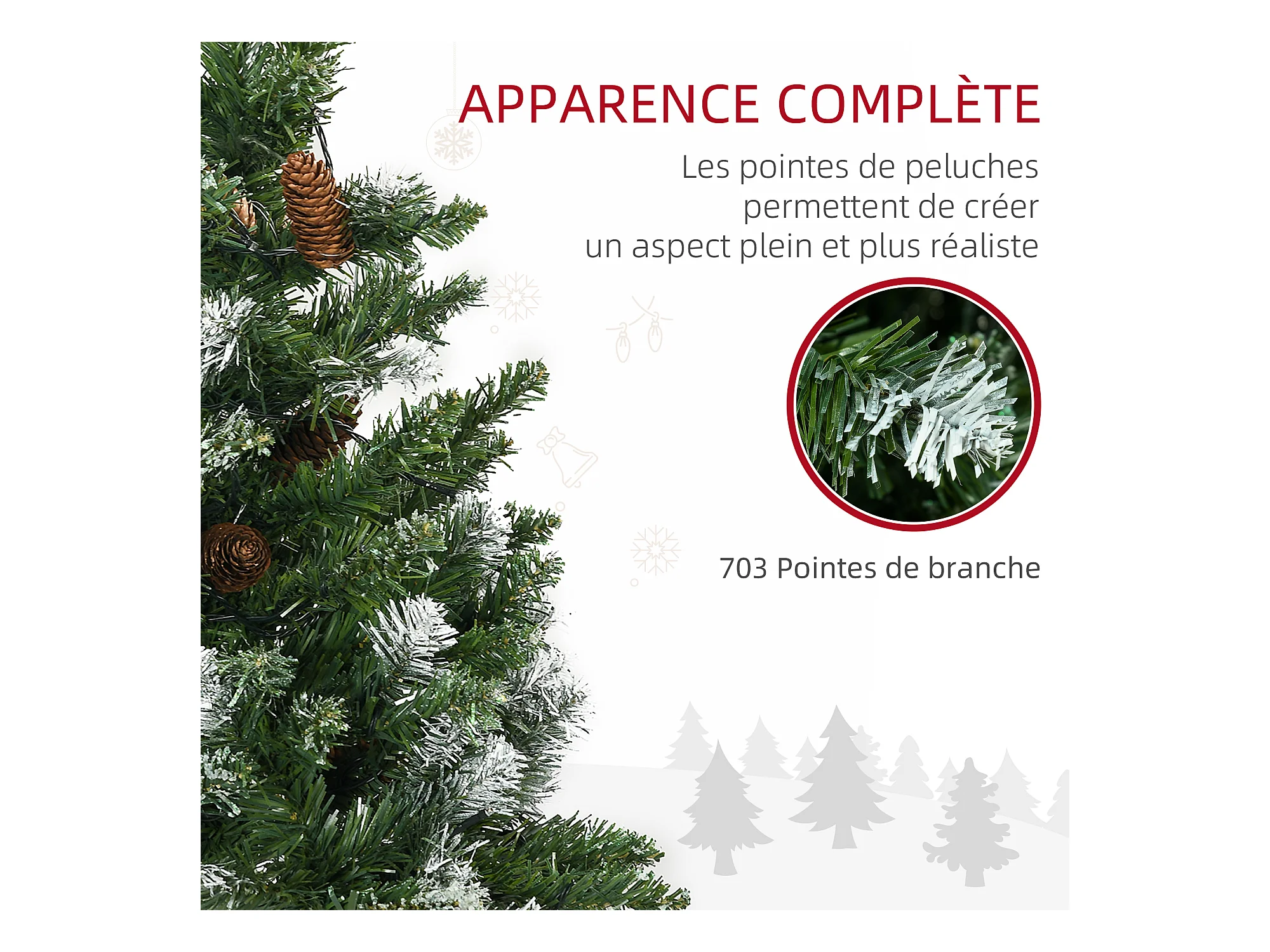 Sapin de Noël artificiel lumineux LED x 250 blanc chaud 30 pommes de pin H. 180 cm 703 branches vert effet neige