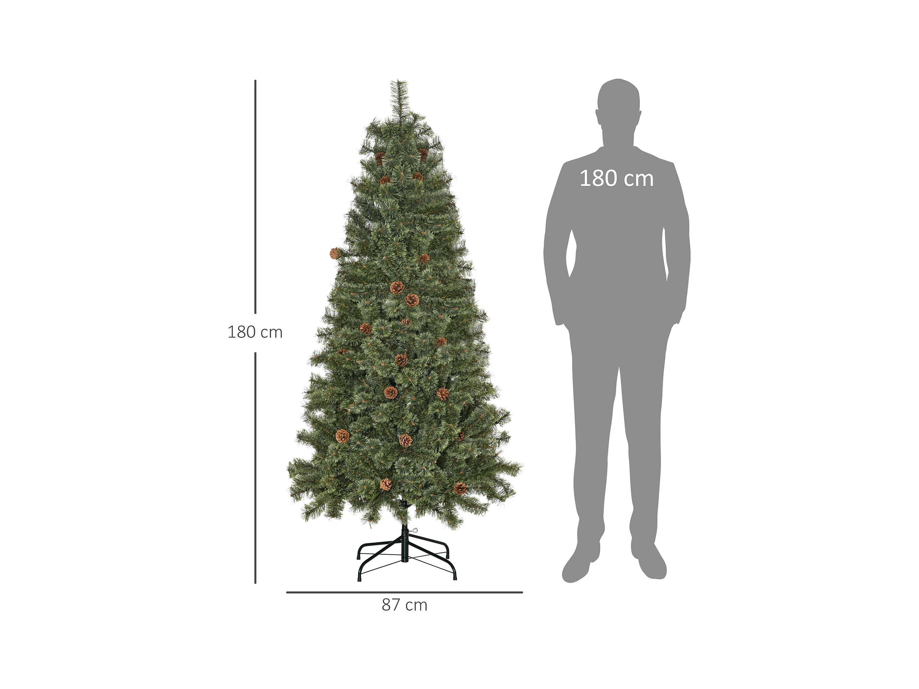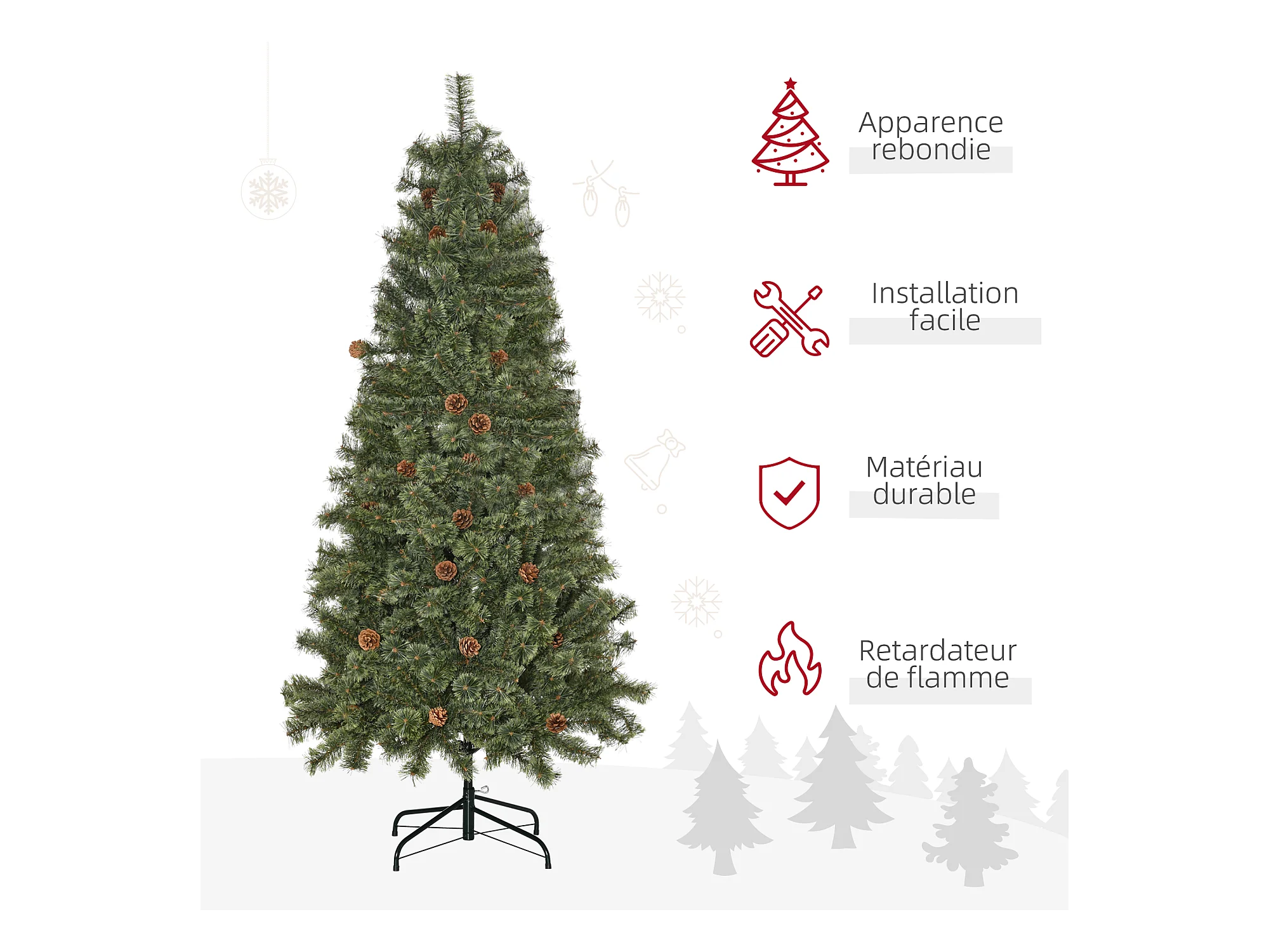 Sapin de Noël artificiel 782 branches épines grand réalisme avec pommes de pin - hauteur 180 cm vert