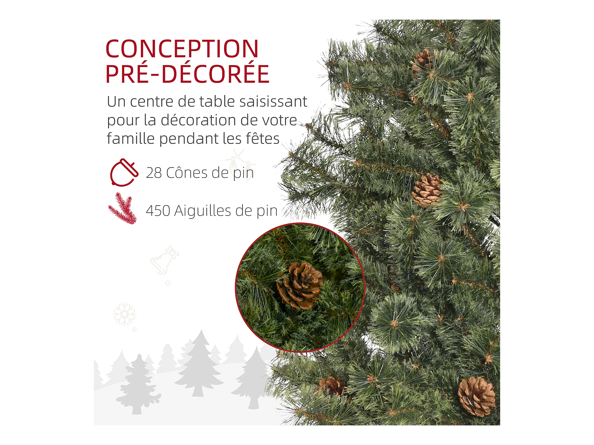 Sapin de Noël artificiel Ø 87 x 180H cm - 450 branches épines imitation Nordmann grand réalisme - 28 pommes de pin - métal PVC vert