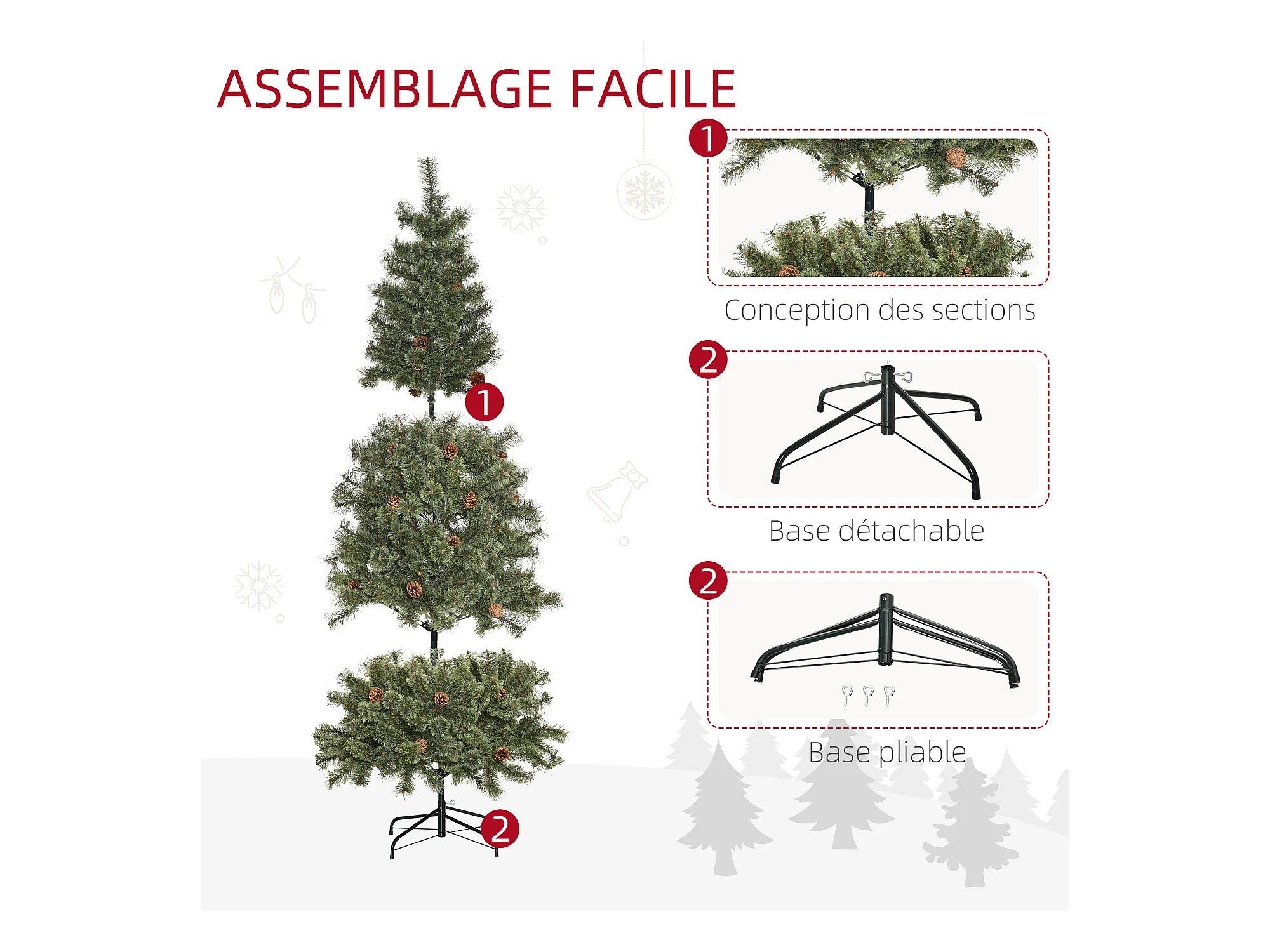 Sapin de Noël artificiel aspect enneigé Ø 86 x 180H cm 50 pommes de pin 718 branches épines imitation Nordmann grand réalisme