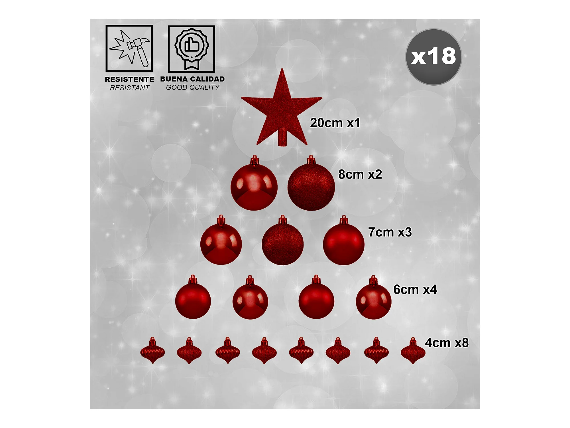 Sapin Vert 180 cm, Pack De 18 Décorations De Noël Rouges, 6 Guirlandes + 20 LED