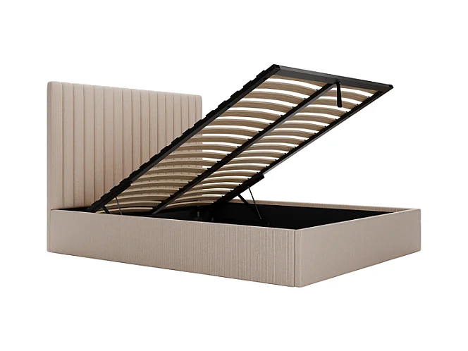 Lit coffre 140 x 190 cm avec tête de lit coutures verticales - Velours côtelé - Beige - SARAH