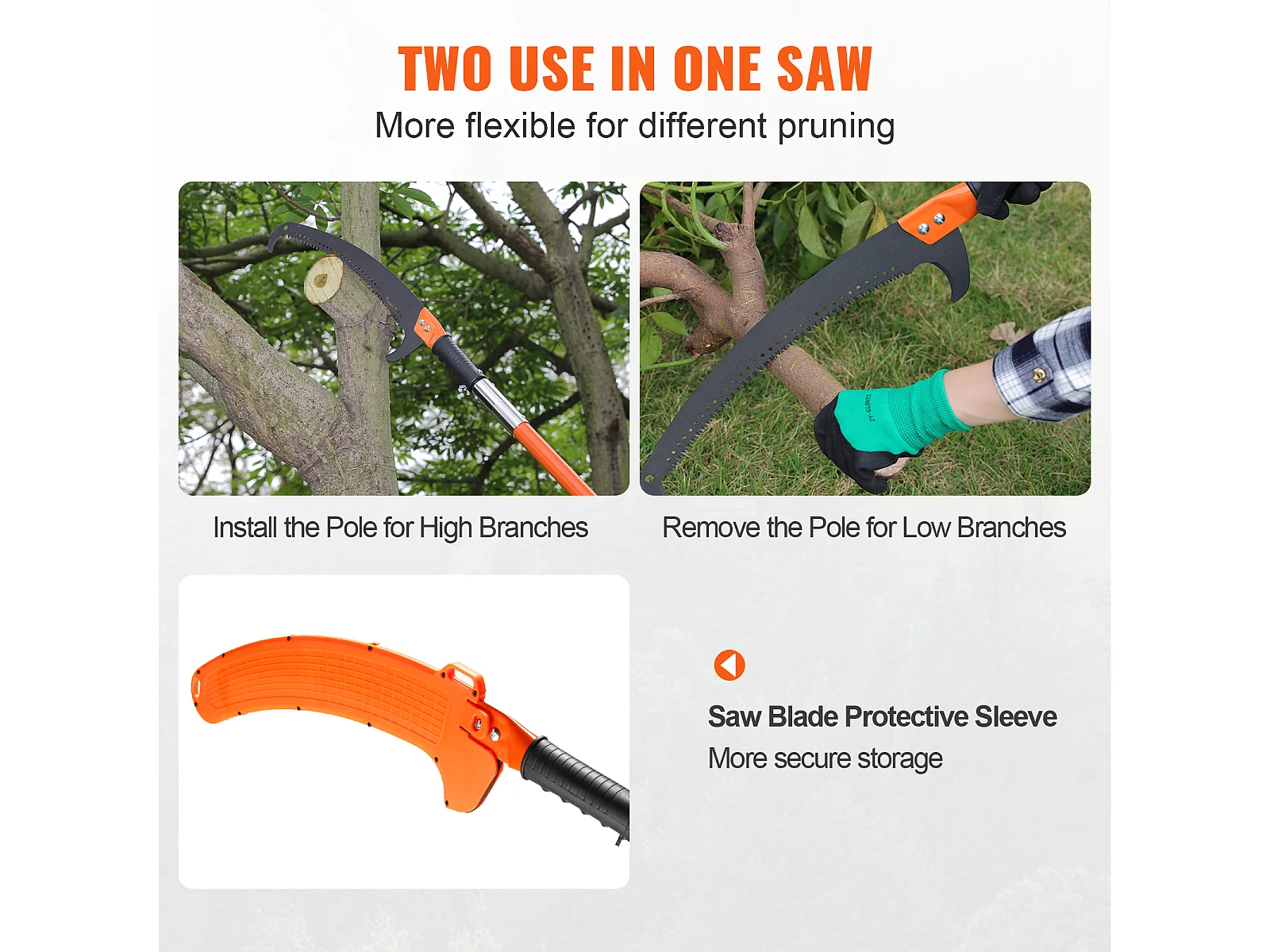 Scie Manuelle pour Perche SucceBuy, Élagueur Extensible, 7.3-27ft, Perche en Fibre de Verre, Couteau à Crochet
