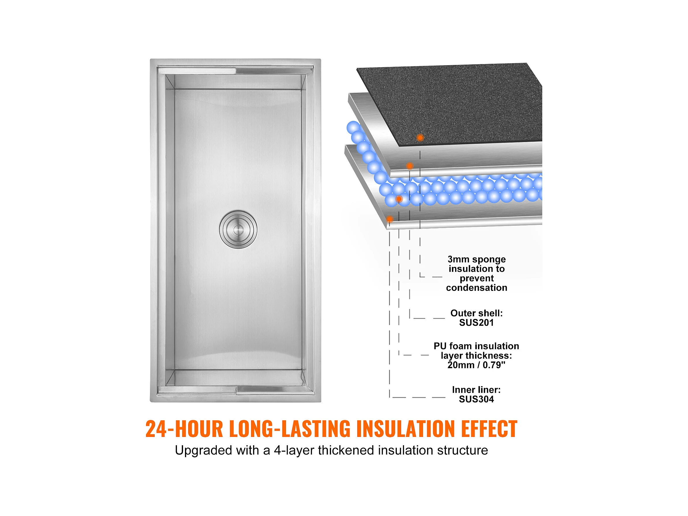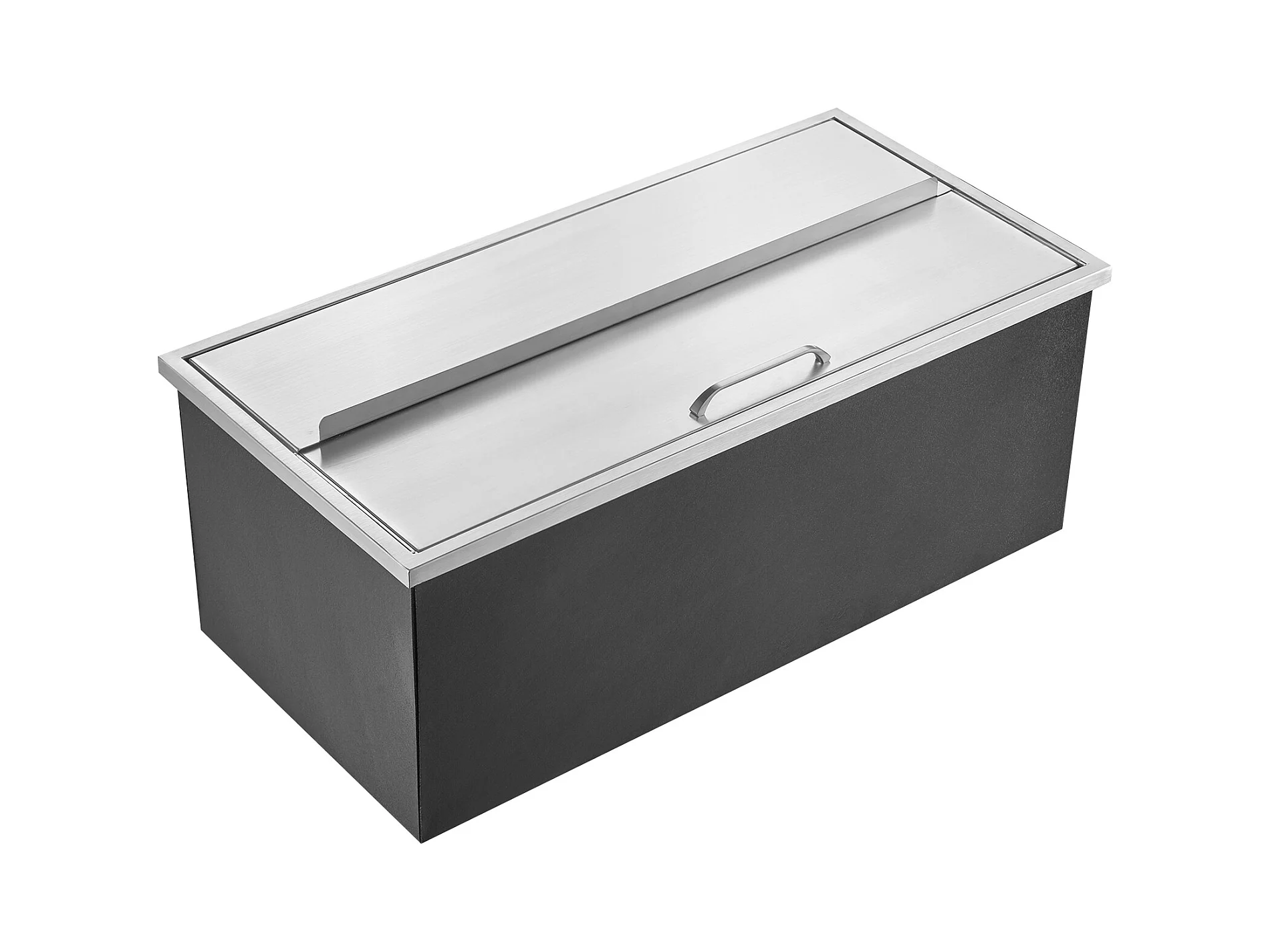Seau à Glace SucceBuy 95,66 L 91x46x36 cm, Glacière Encastrée en Acier Inoxydable avec Couvercle, Idéal pour la Cuisine Extérieure