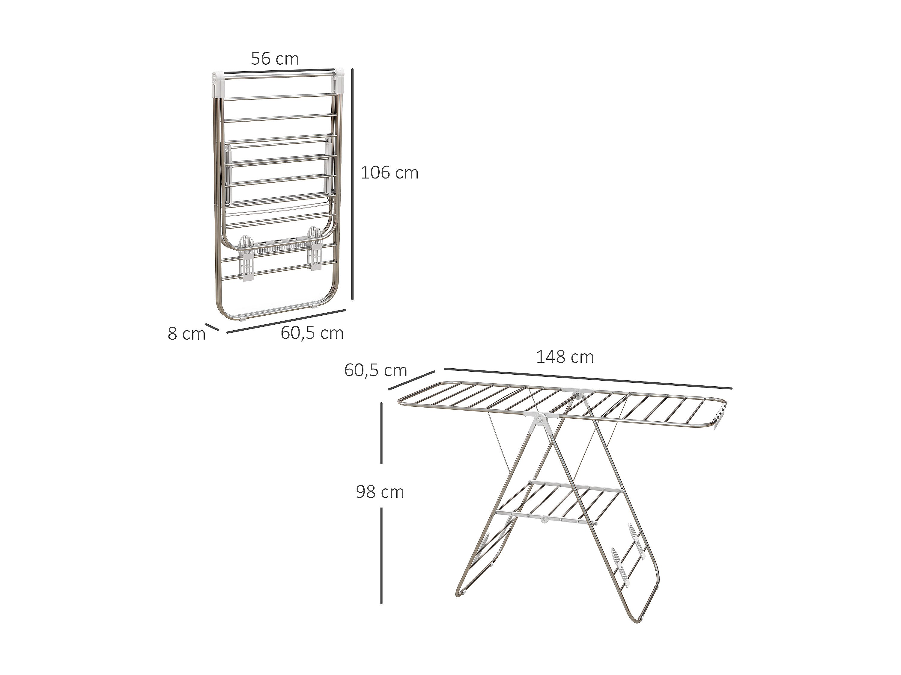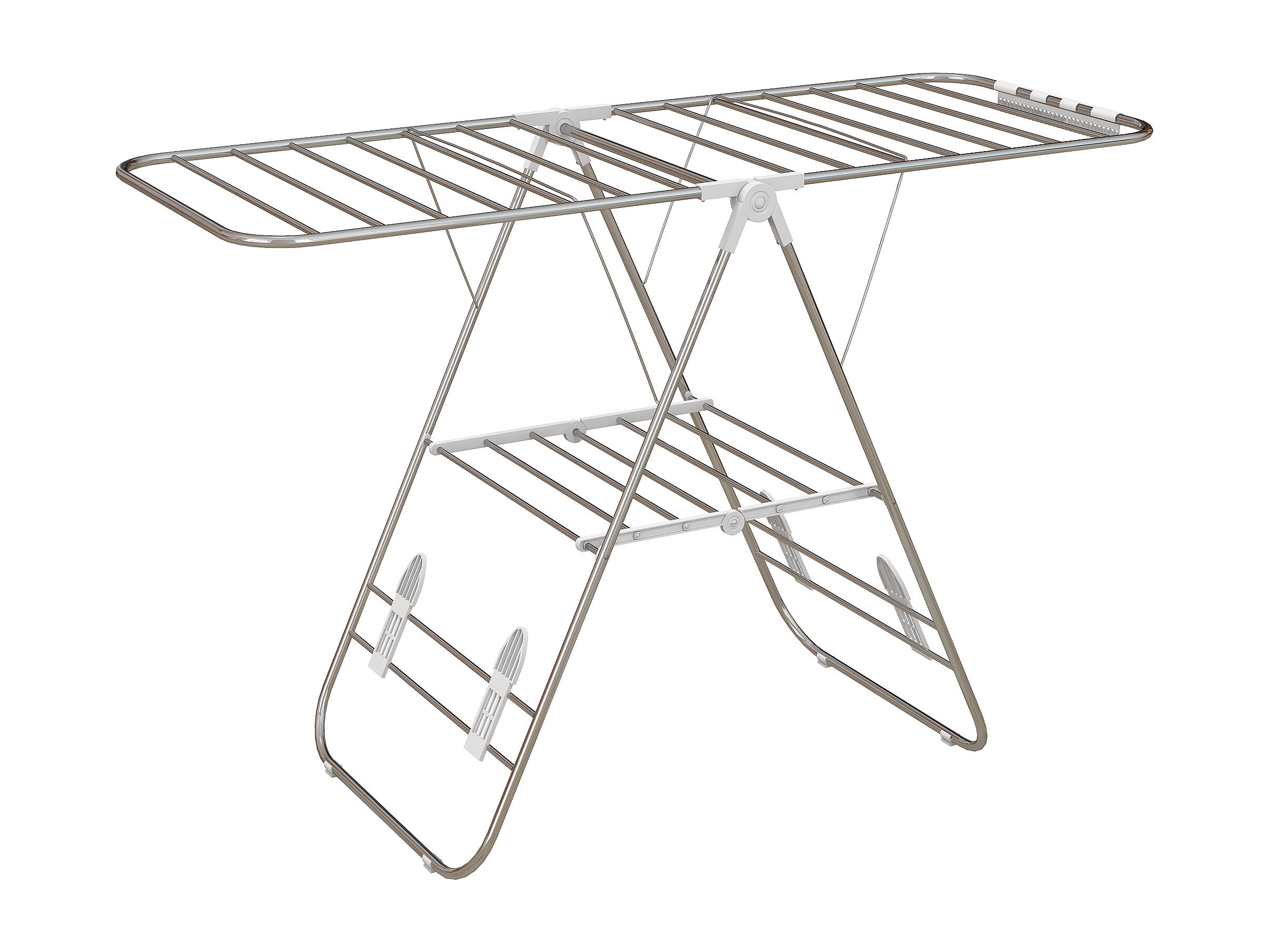 Séchoir à linge pliable sur pied - étendoir 2 niveaux ajustables - acier PP blanc