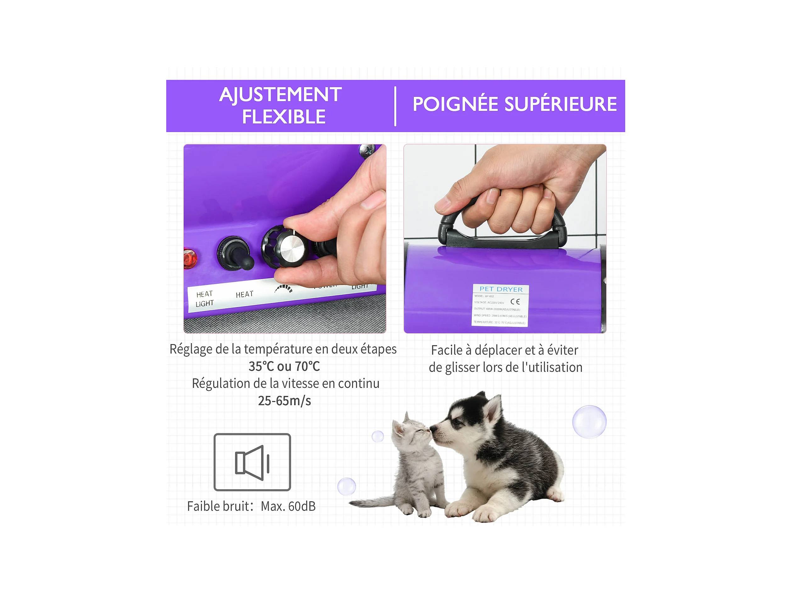 Séchoir sèche-poils toilettage professionnel pour chien chat animaux 2800 W température + vitesse réglable rose fuchsia noir