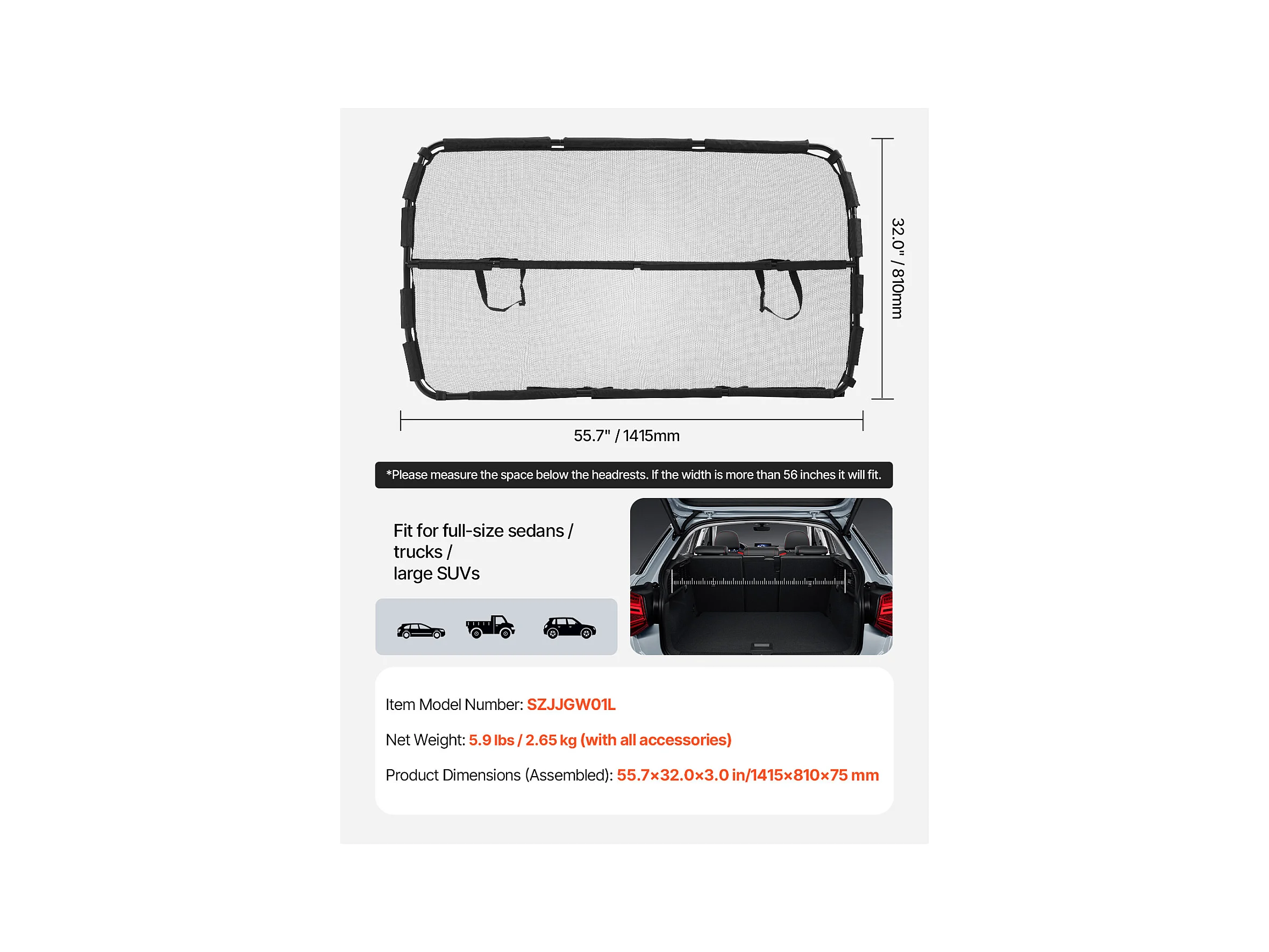 Sécurité Barre Réglable pour Chien SucceBuy Barrière de Sécurité pour Chien de 142.2 cm de Large - Installation sur les Sièges Avant - Séparateur de Voiture
