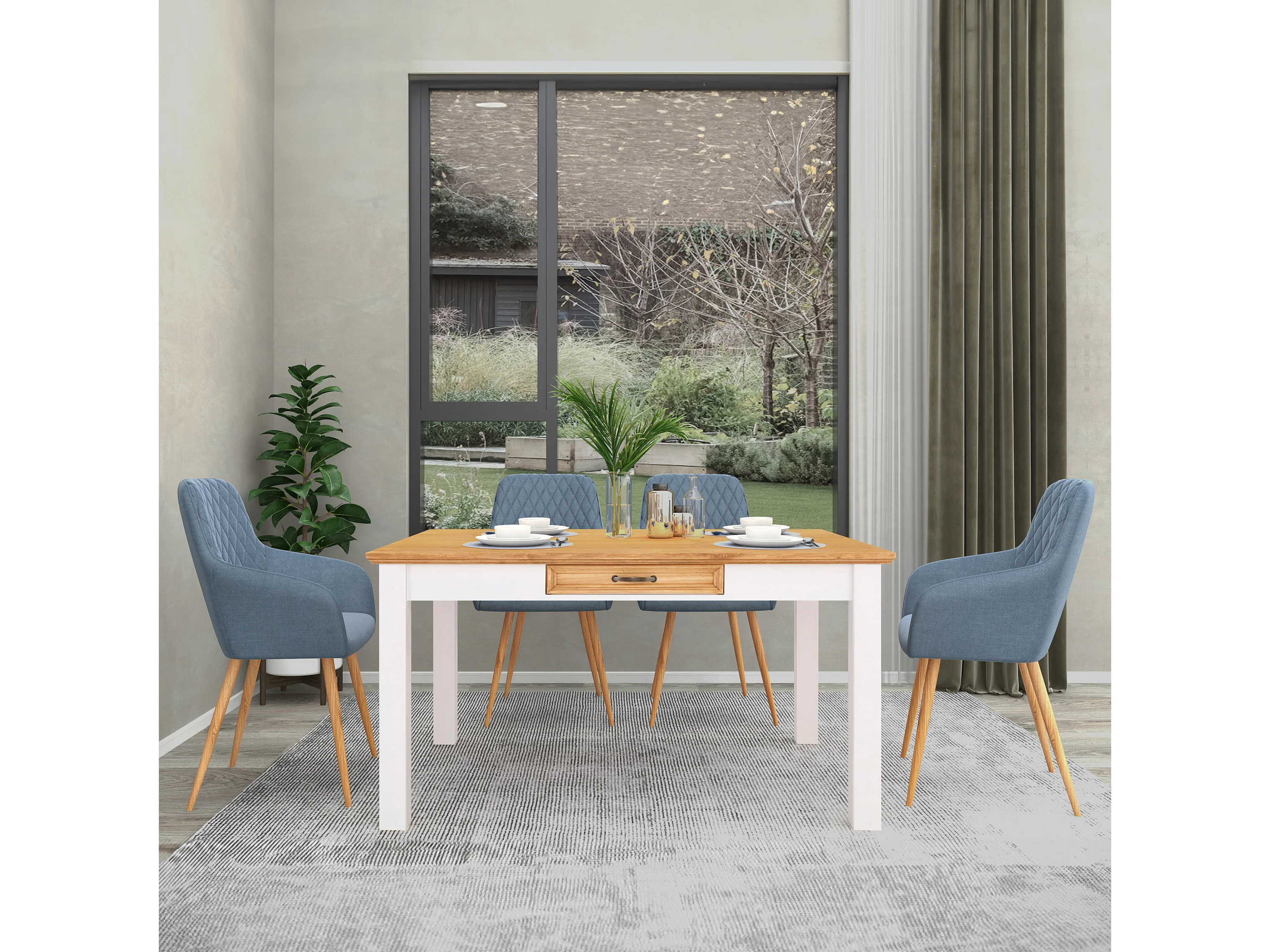Selma | Table à manger 140 cm avec 1 tiroir en pin blanc