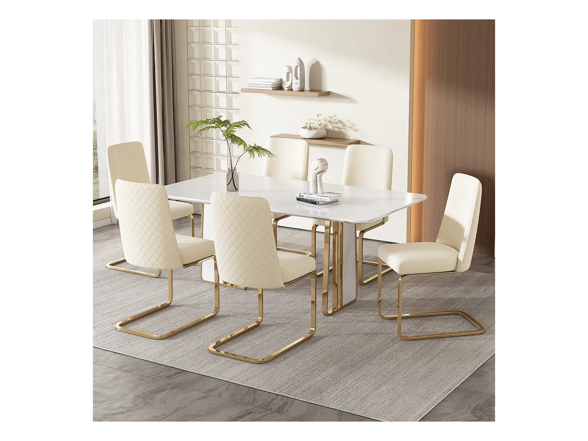 Lot de salon 4 chaises en velours de luxe - 88 x 52 x 45 cm - dossier en diamant - pieds en métal doré - beige