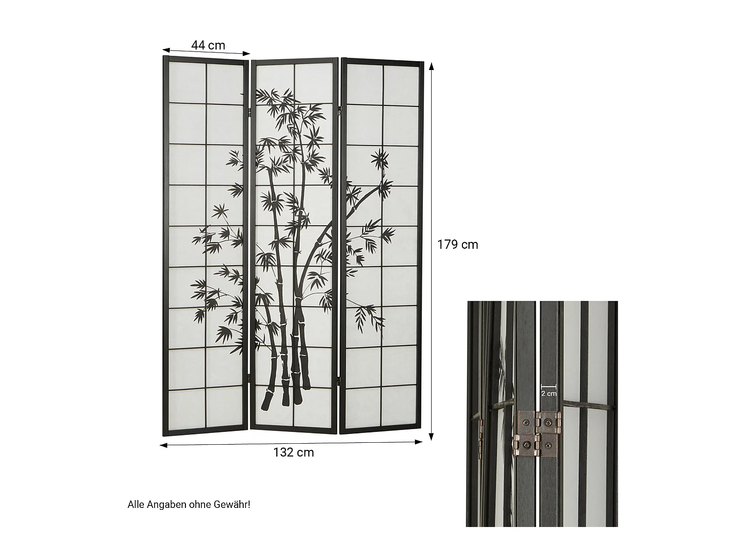 Paravent 179x132x2 cm noir Shoji