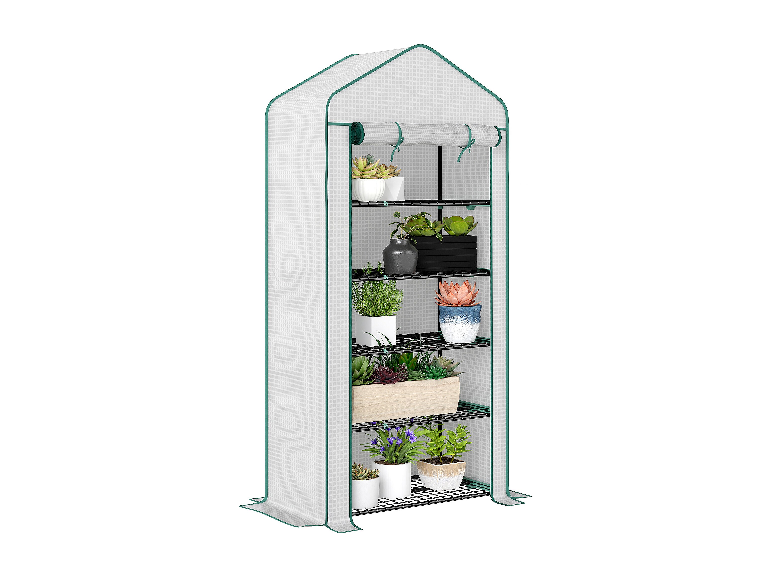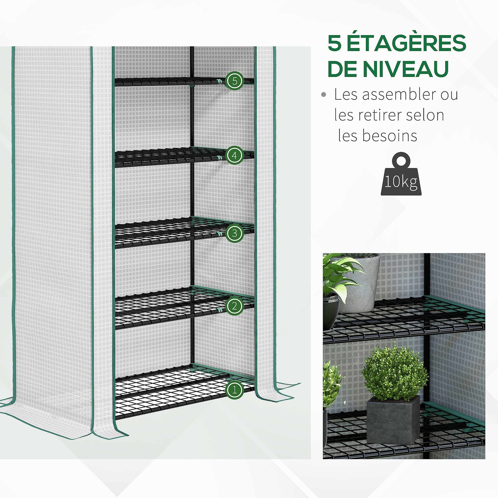 Serre de jardin balcon 5 niveaux porte acier PE blanc
