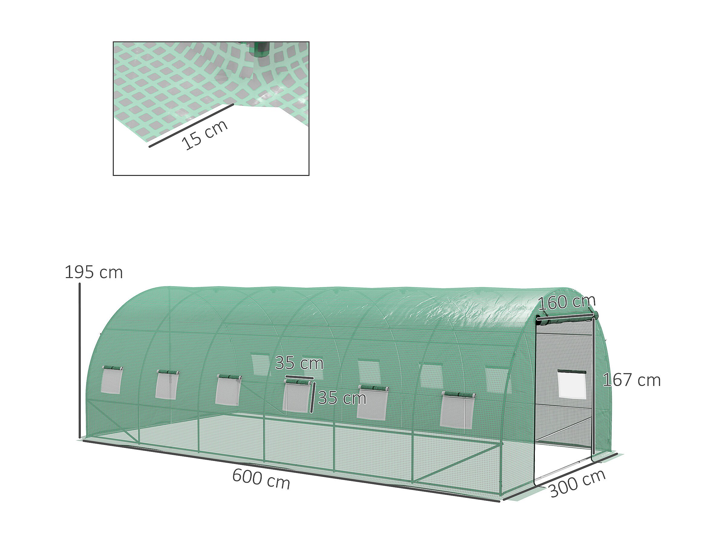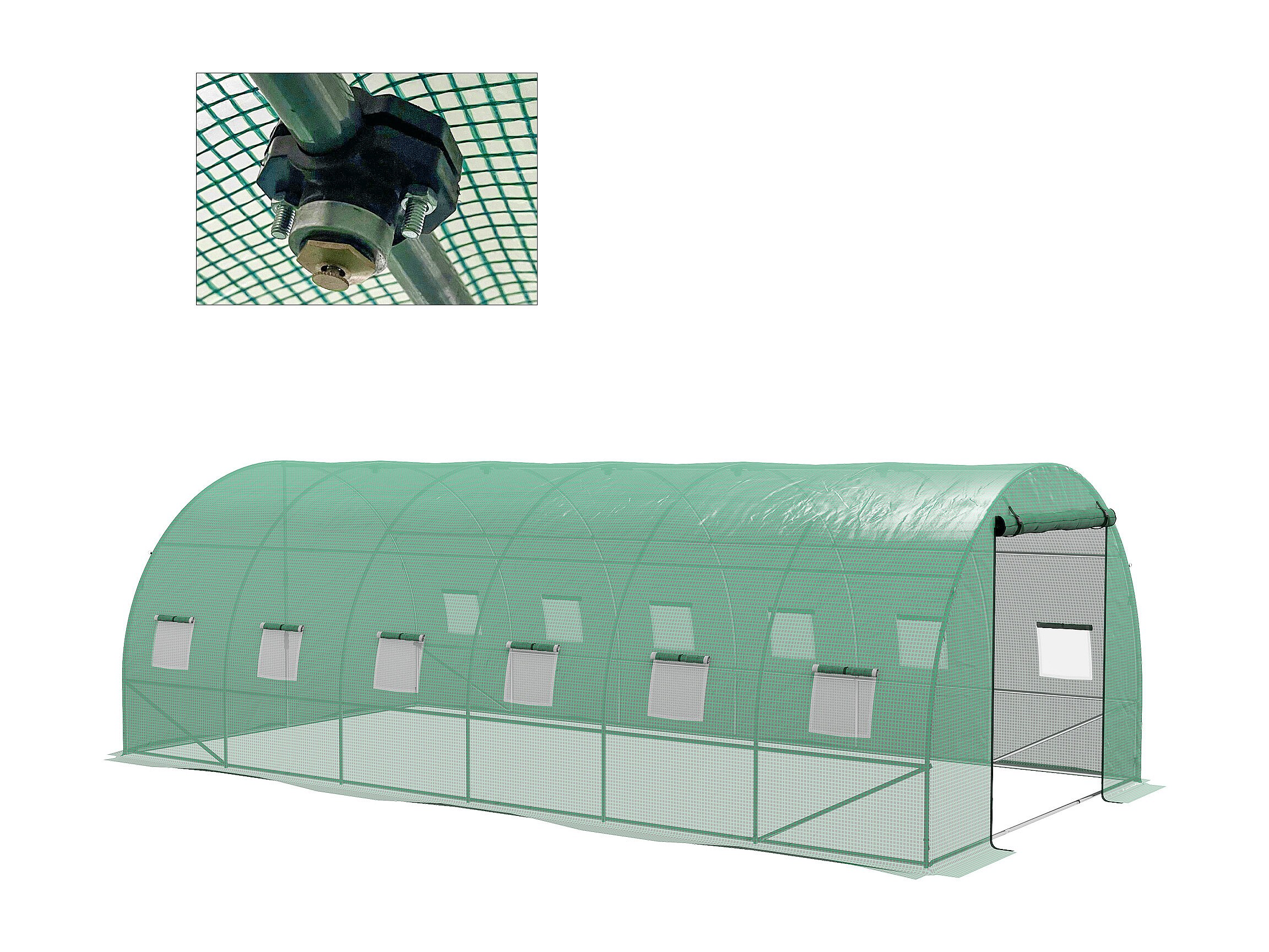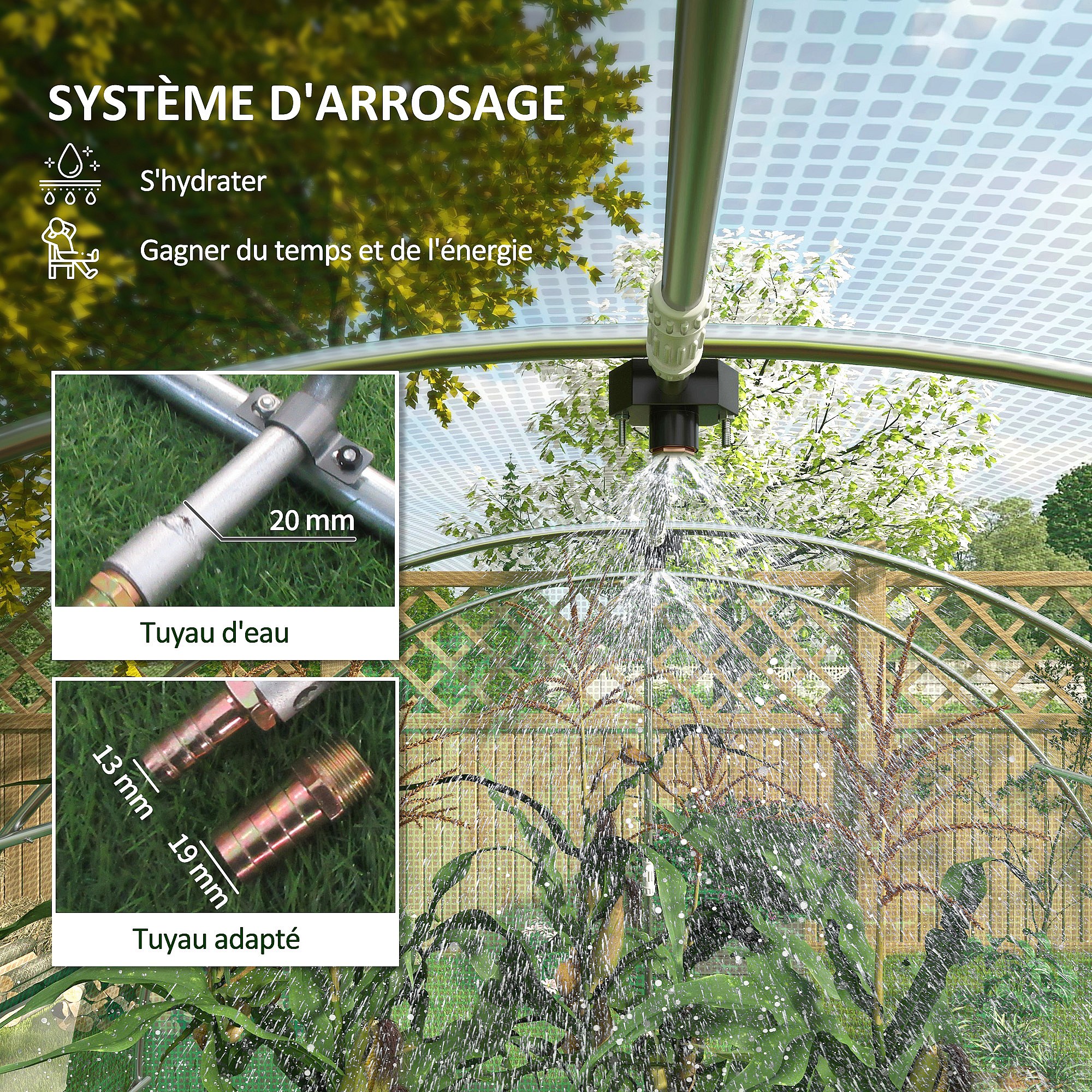 Serre de jardin tunnel 18 m² système d'arrosage intégré acier renforcé PE haute densité vert