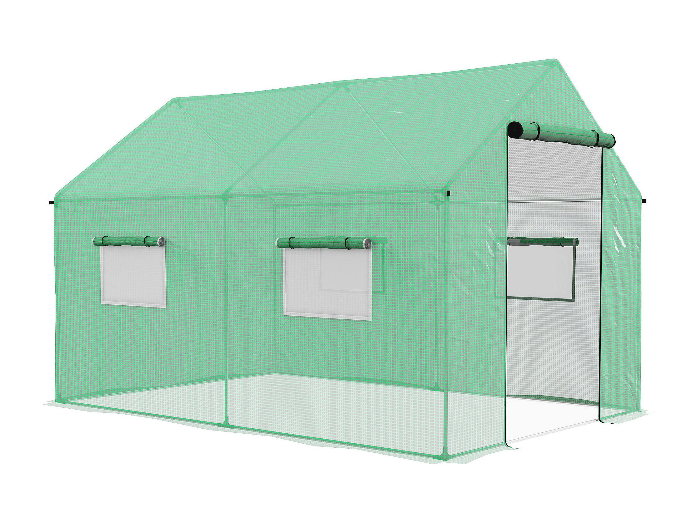 Serre de jardin tunnel 6 m² porte 4 fenêtres acier galvanisé PE vert