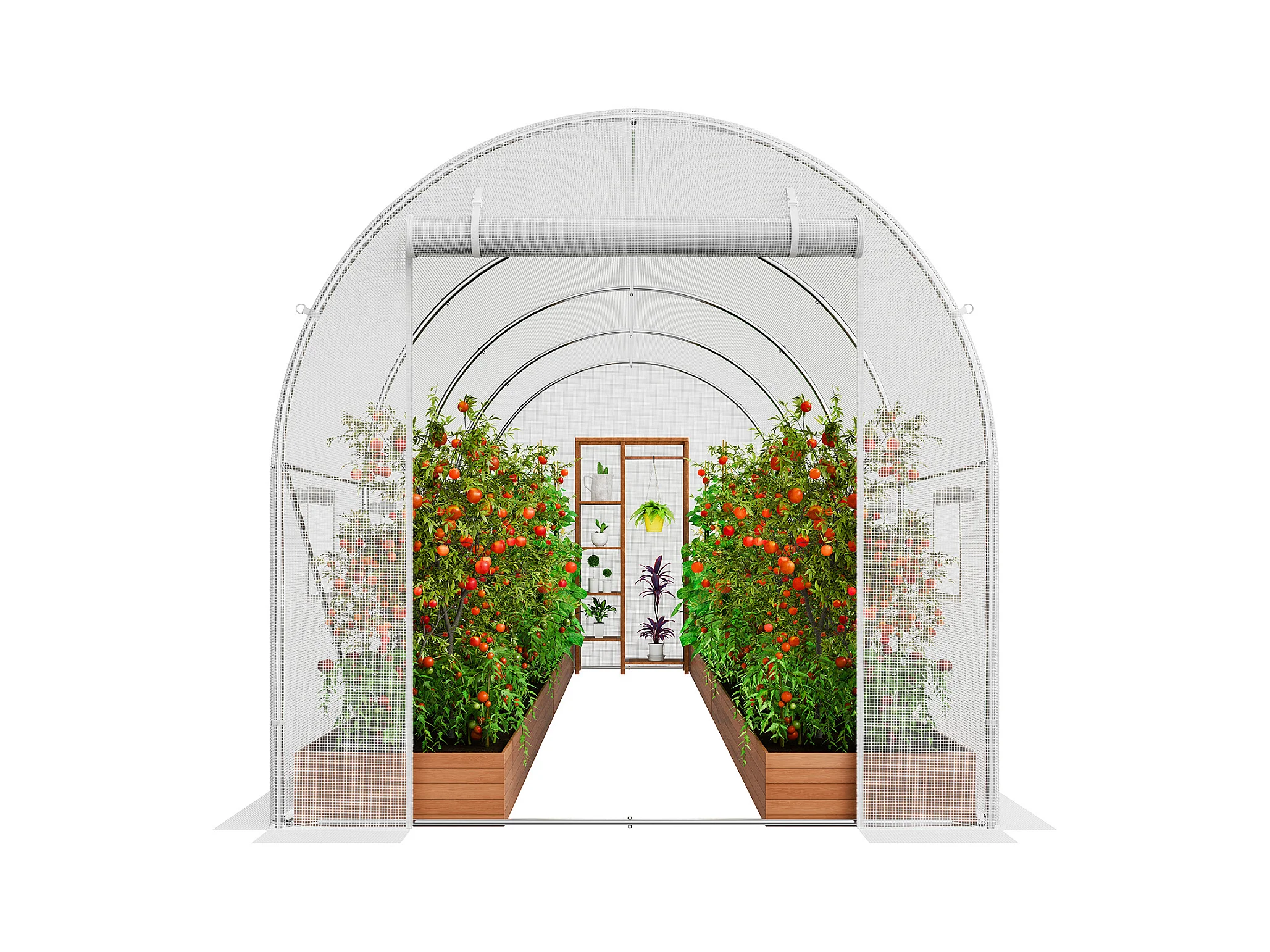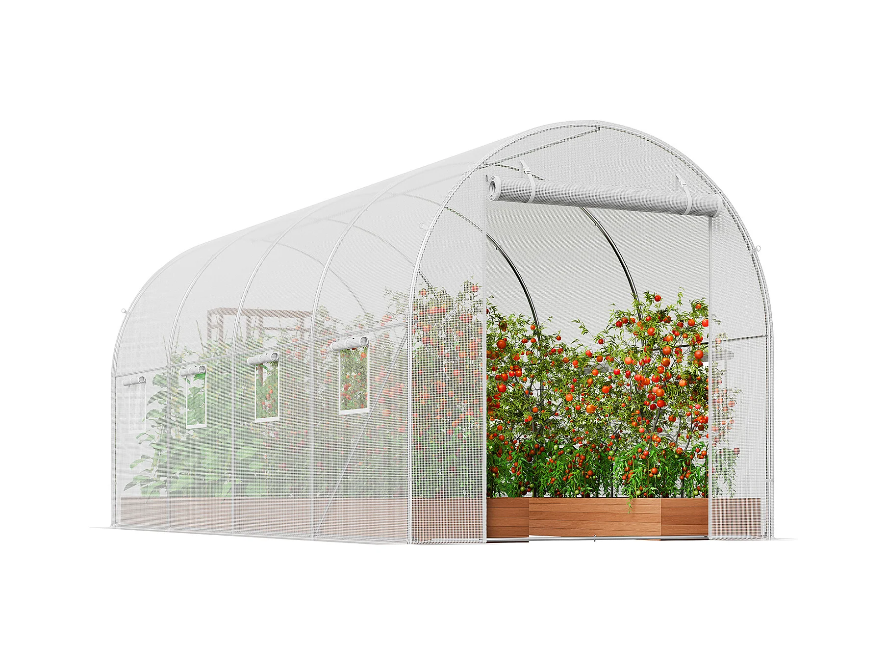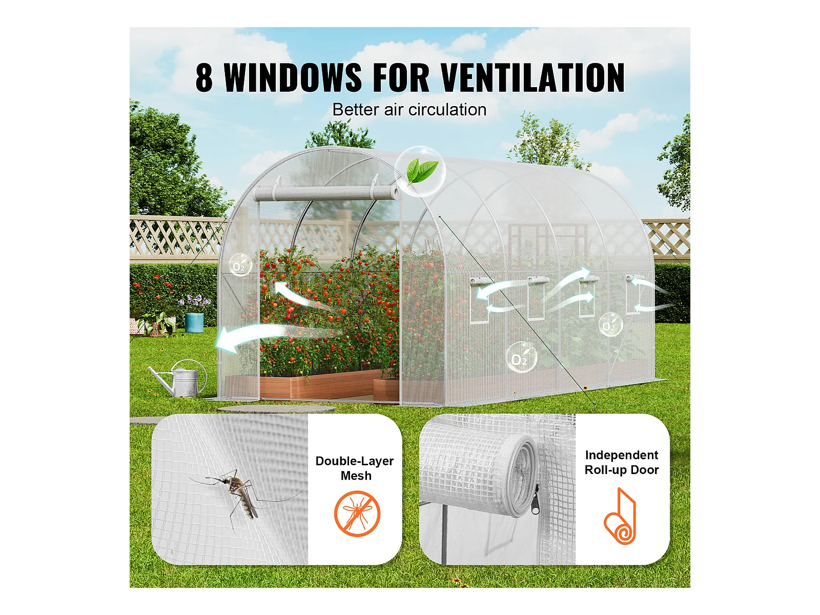 Serre Tunnel SucceBuy, 4,45 x 1,95 x 1,90 m, Cadre Galvanisé, Couverture PE, Blanc