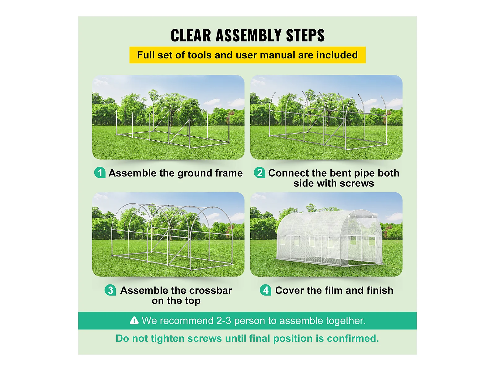 Serre Tunnel SucceBuy 457.2x213.36x213.36 cm Walk-In Greennel Greenhouse, Frame Galvanisé et Couvercle Étanche