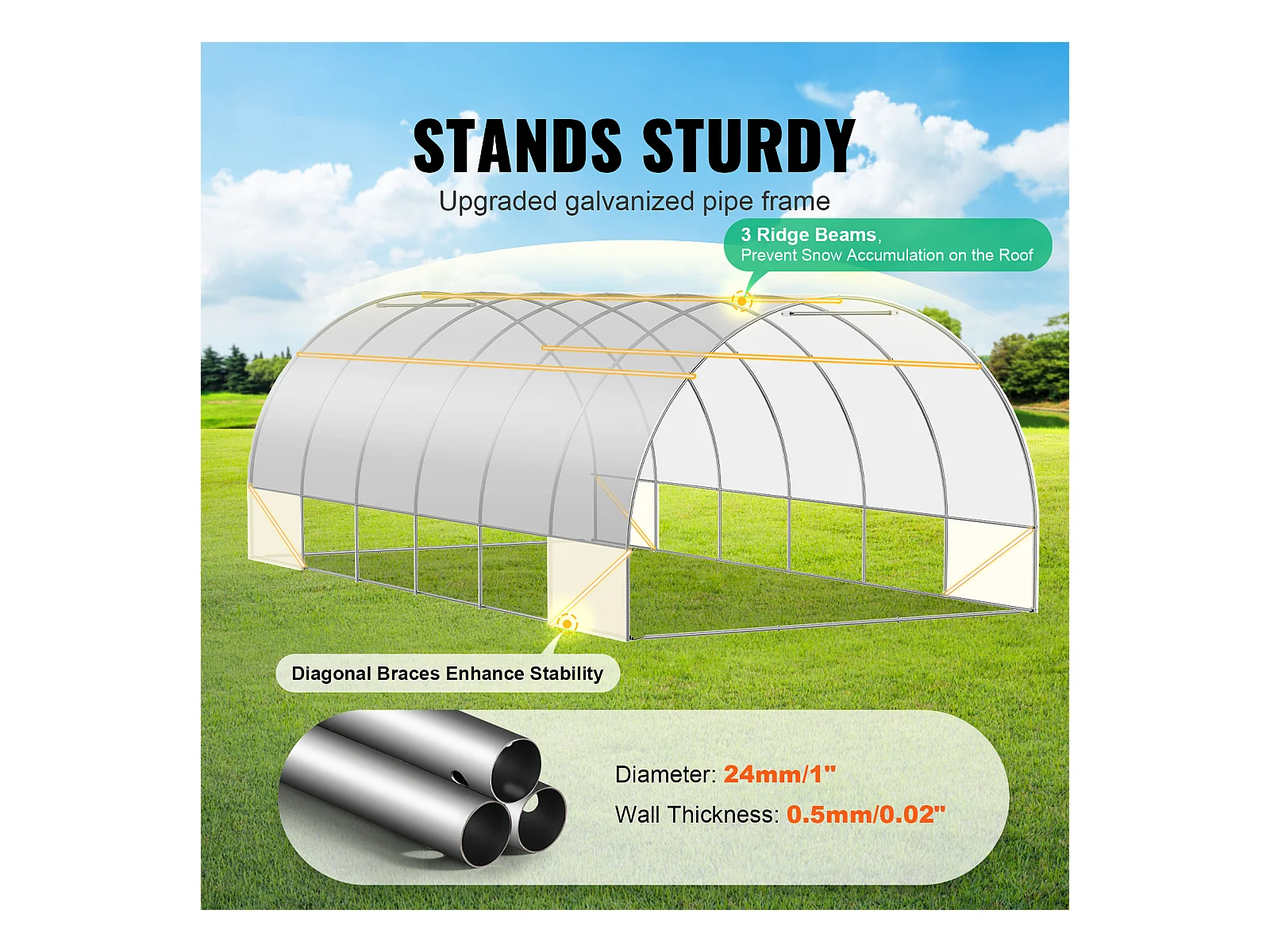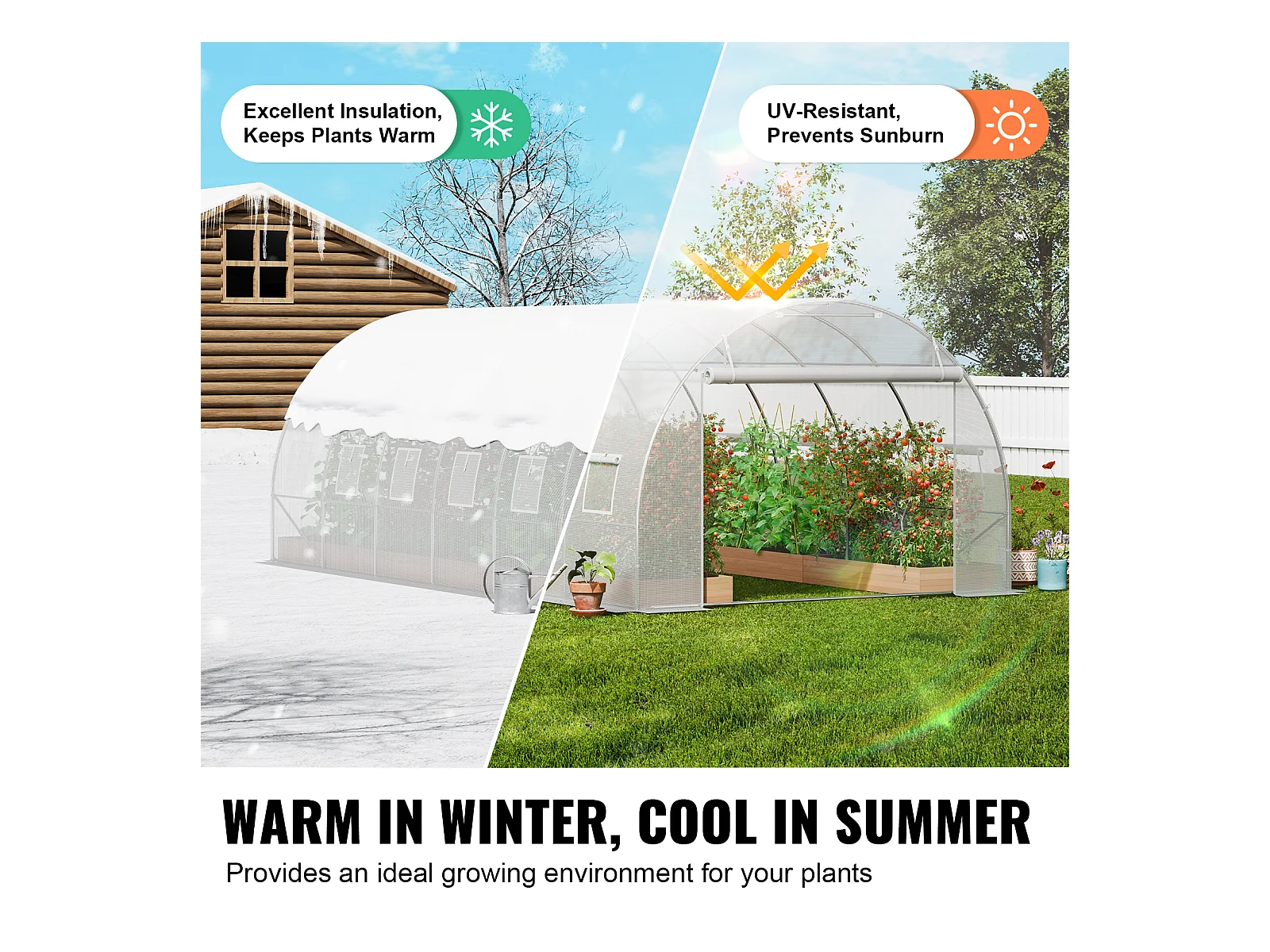 Serre Tunnel SucceBuy, 5,8 x 2,8 x 2,0 m, Cadre Galvanisé, Revêtement PE, Blanc