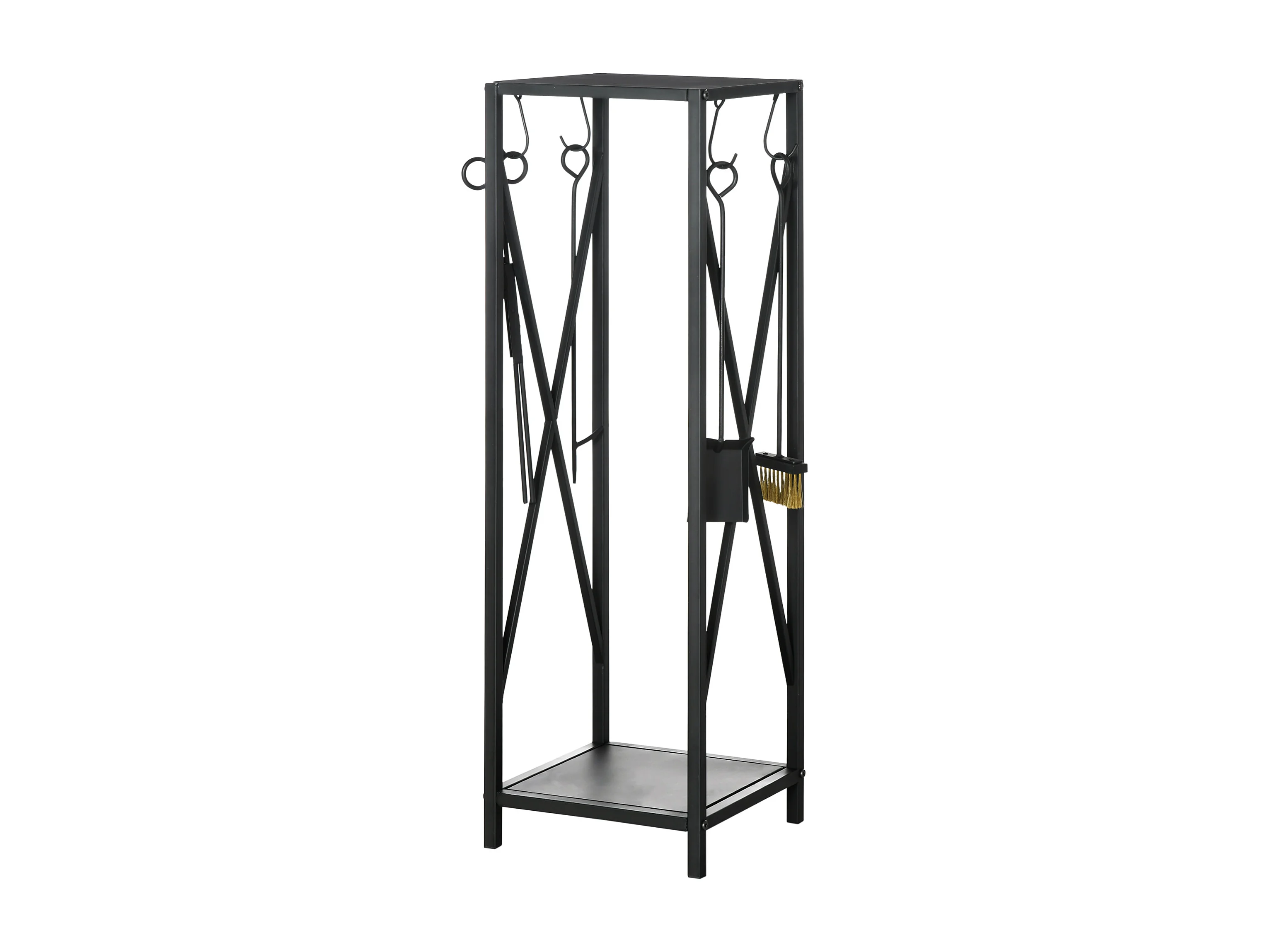 Serviteur de cheminée colonne - porte bûches - range bûches multi accessoires dim. 34L x 34l x 111H cm métal noir