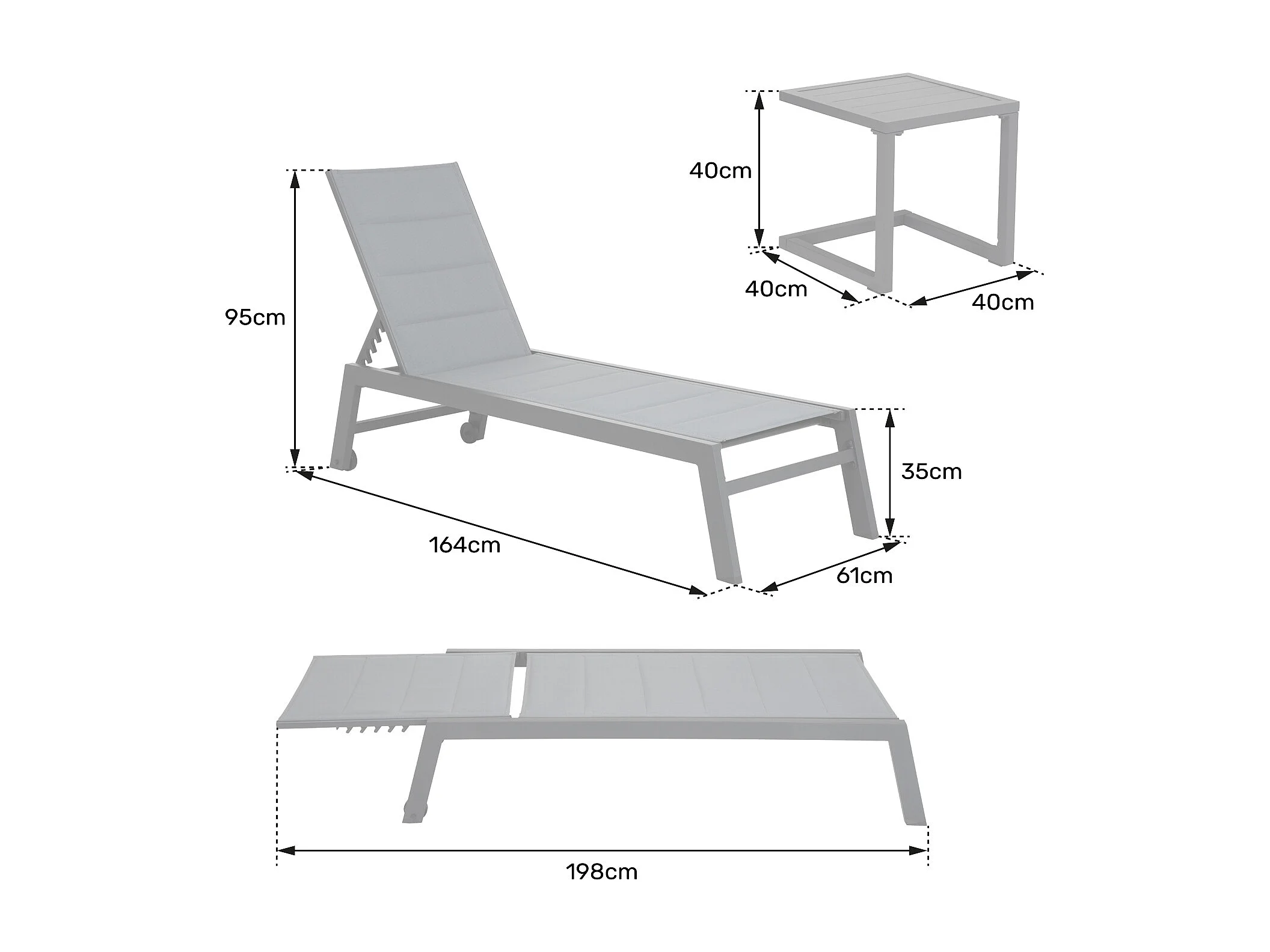 Set bain de soleil et table d'appoint BARBADOS en textilène bleu - aluminium blanc - HAPPY GARDEN