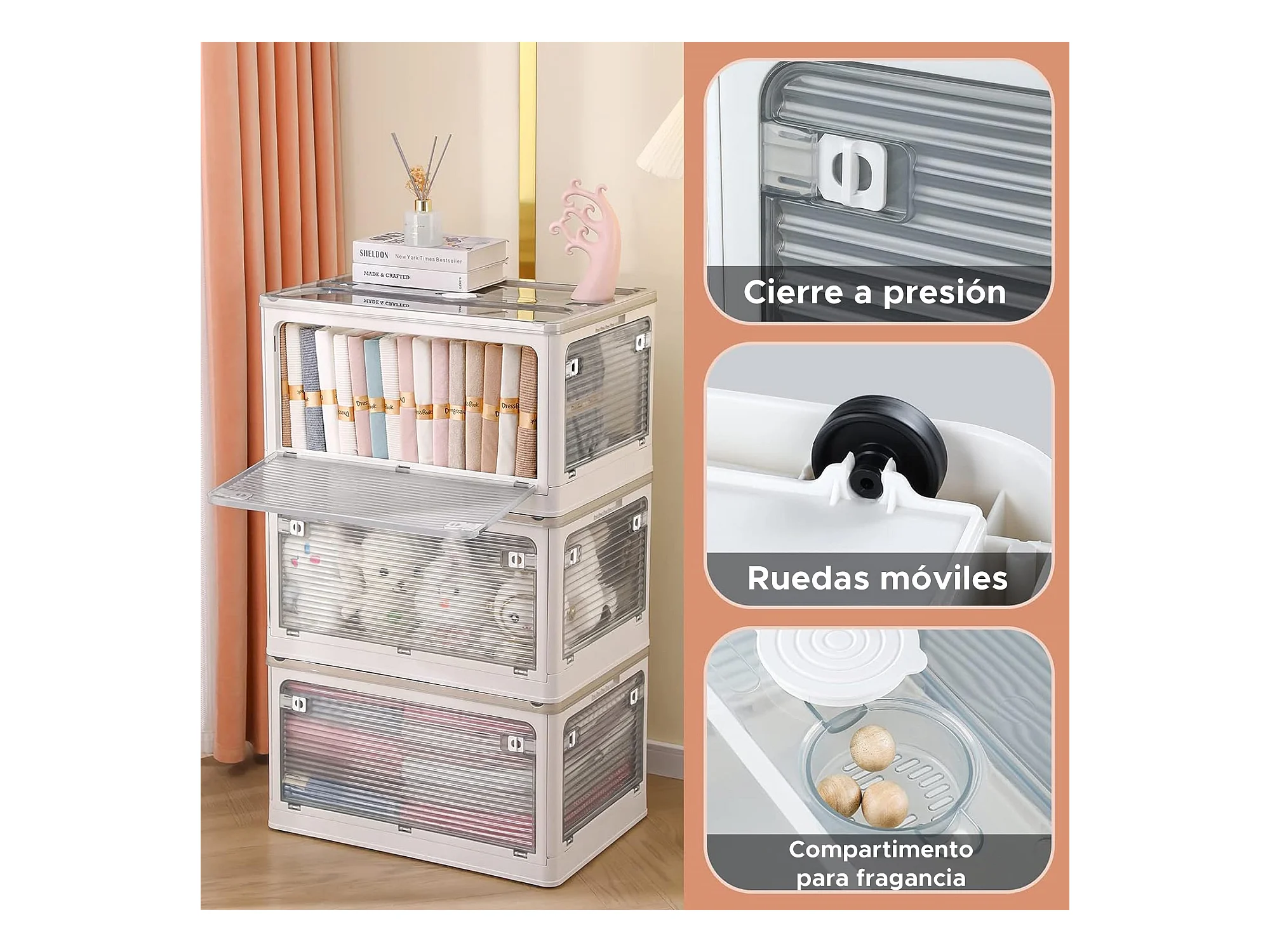 Boîte de rangement en polypropylène transparent 100L fermeture à clip et roues