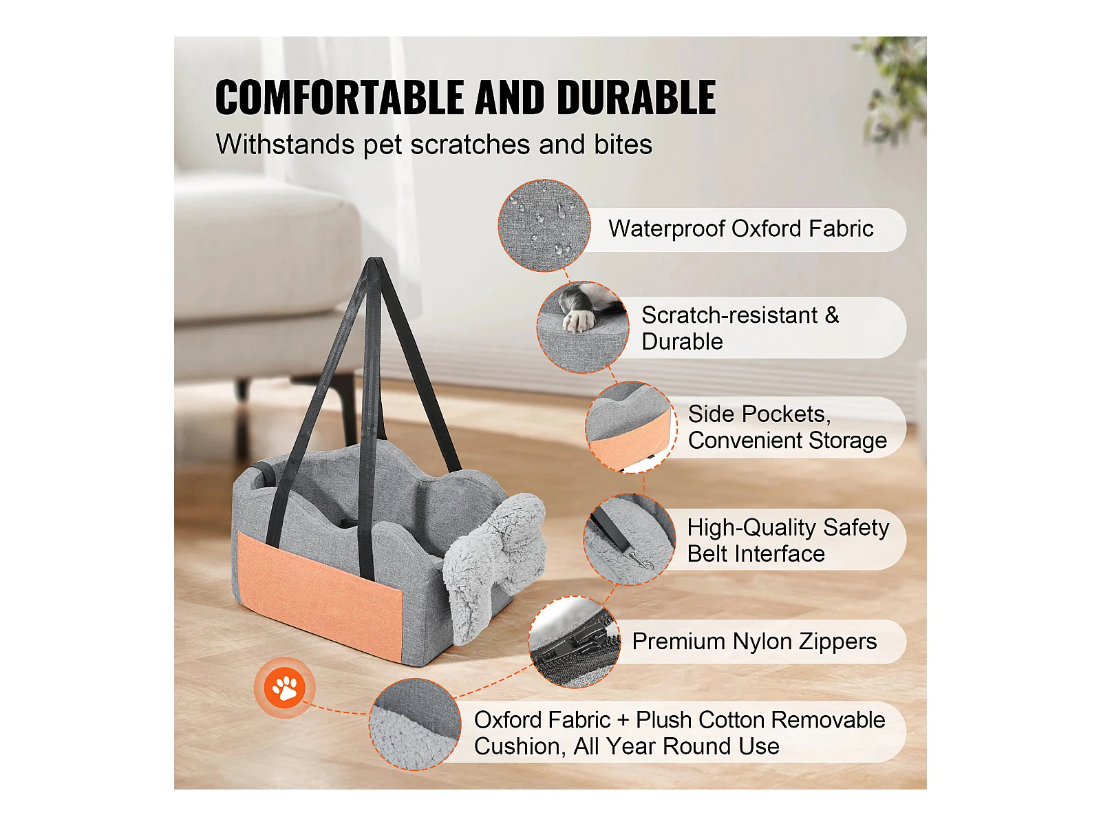 Siège Auto pour Chien SucceBuy, Console Centrale pour Petit Chien (3,6 kg), Gris Foncé