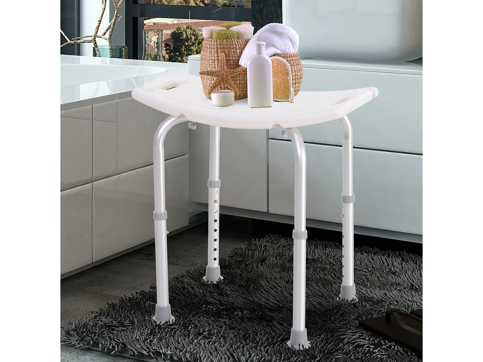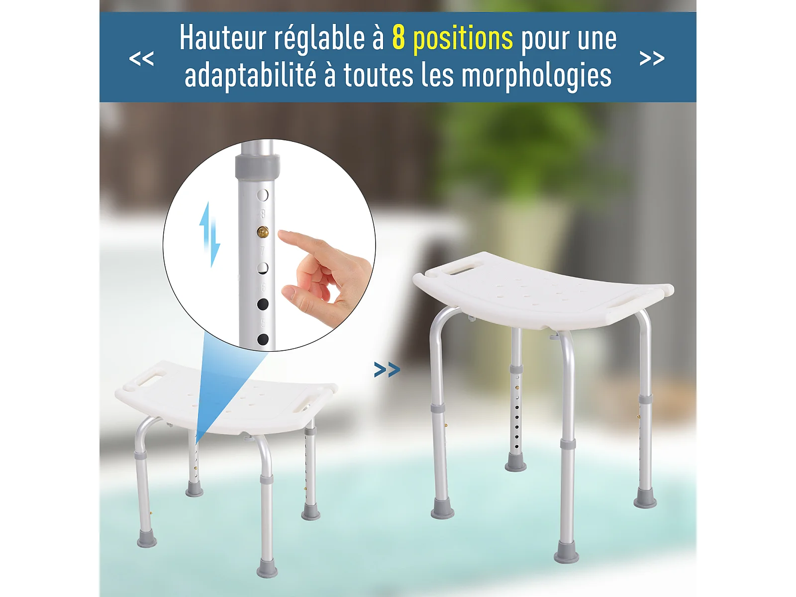 Siège de douche réglable en hauteur tabouret de douche ergonomique pieds antidérapants charge max. 136 Kg alu HDPE blanc