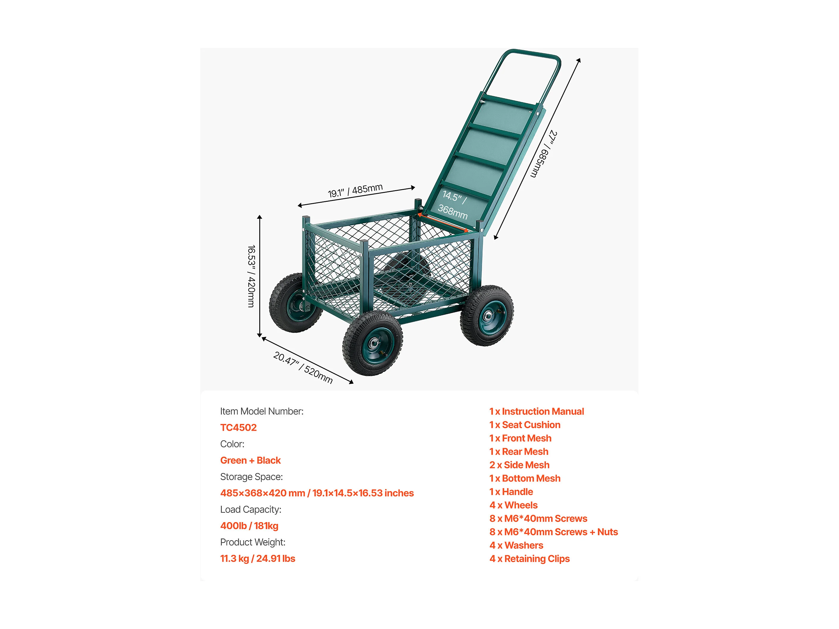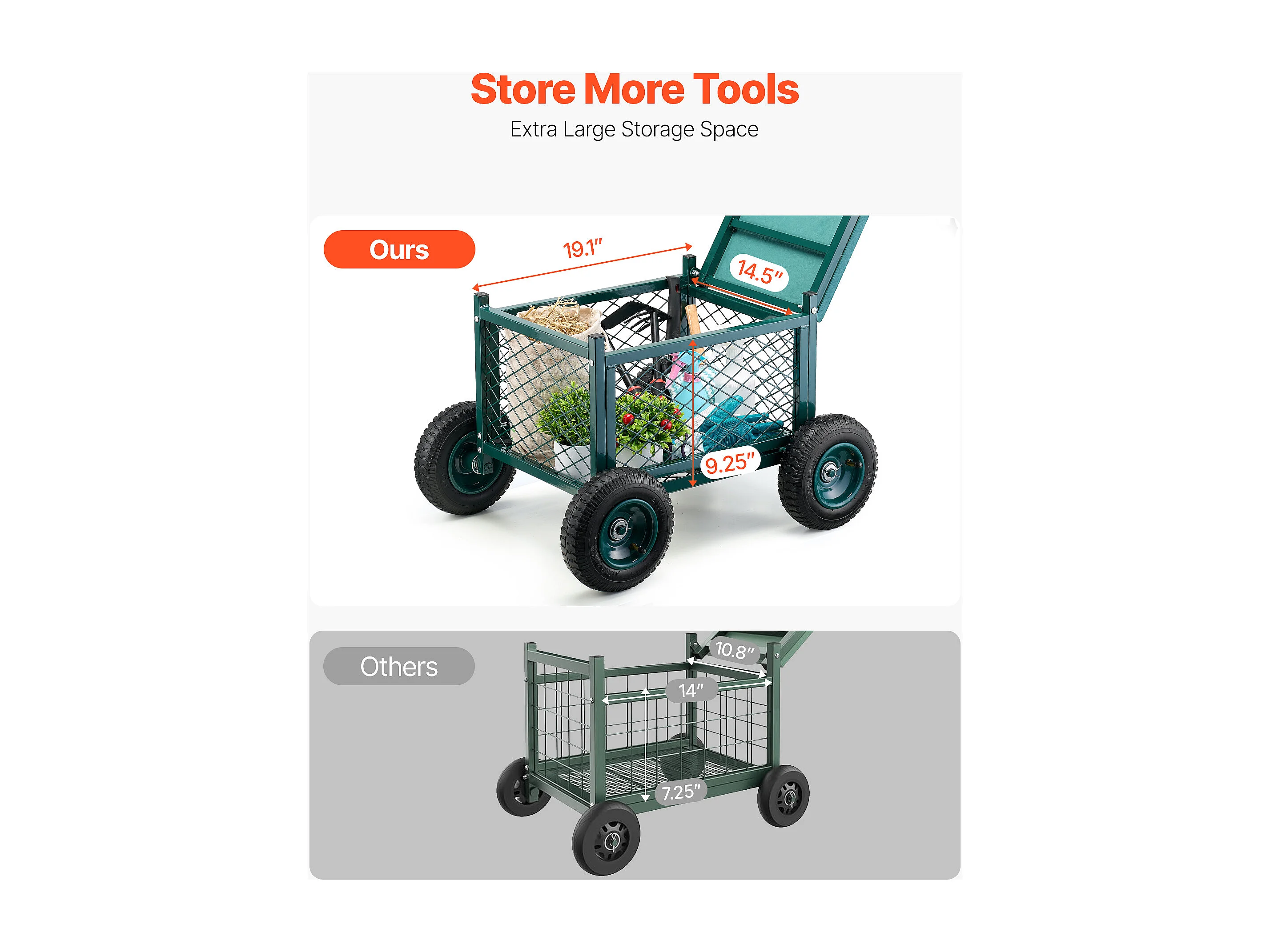 Siège de Jardin Roulant SucceBuy, Tabouret de Jardinage sur Roues Robuste avec Bac de Rangement, Capacité 181 kg, pour Plantation, Terrasse, Extérieur