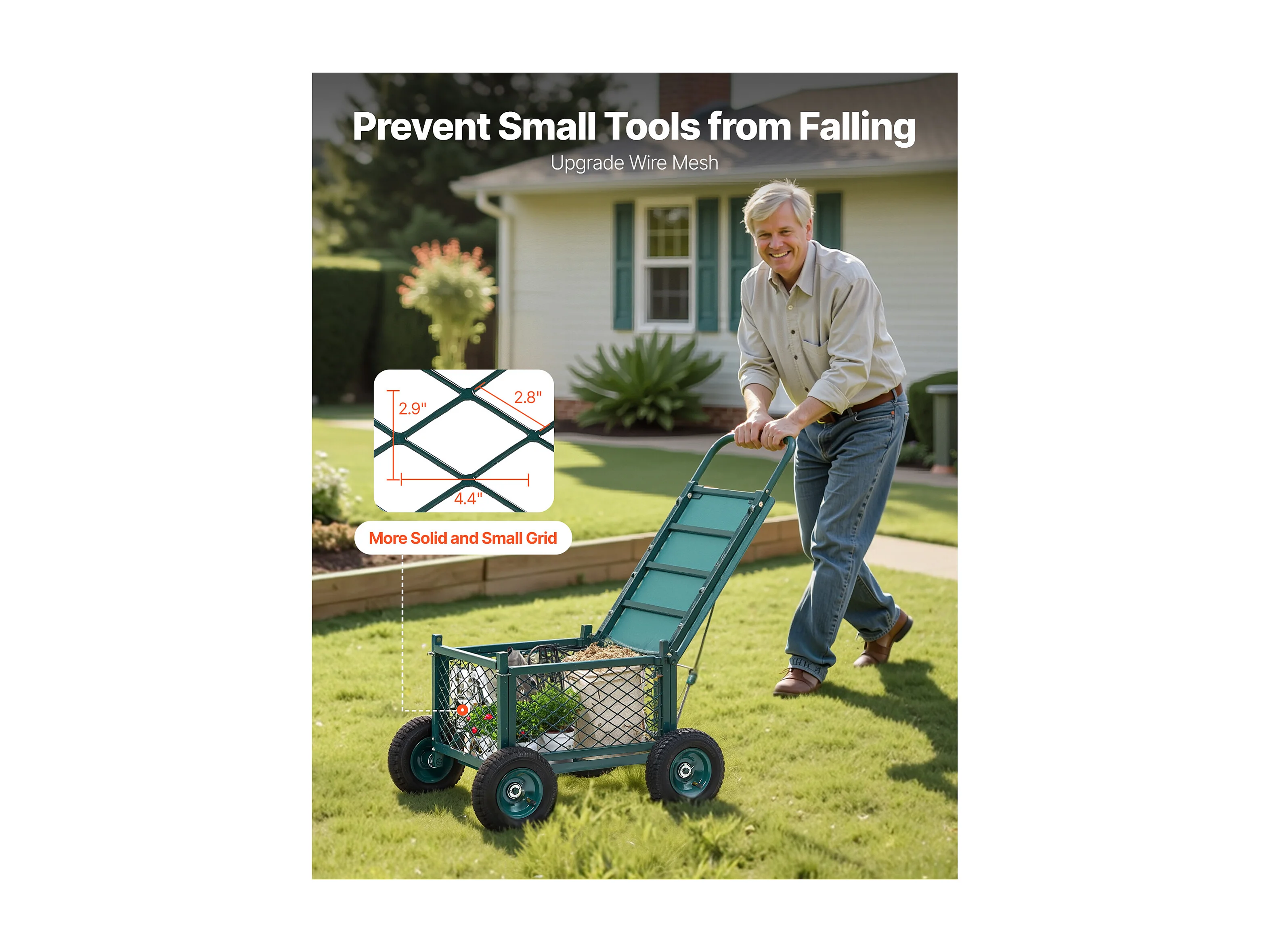 Siège de Jardin Roulant SucceBuy, Tabouret de Jardinage sur Roues Robuste avec Panier de Rangement à Outils, Capacité 136 kg, pour Plantation, Extérieur