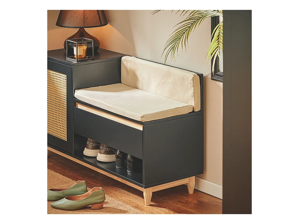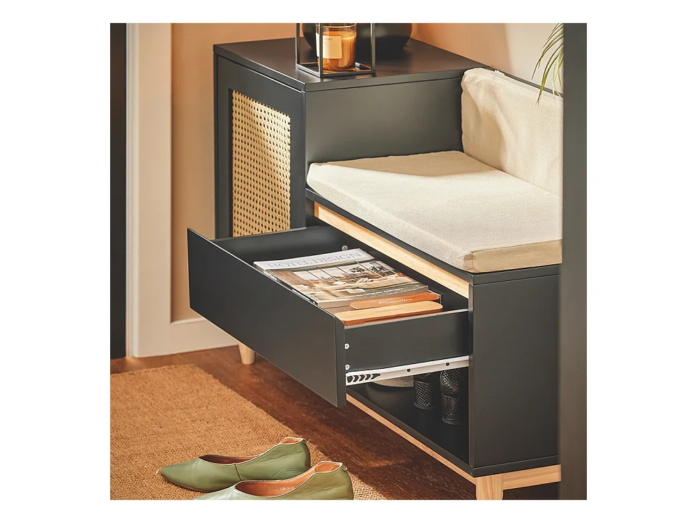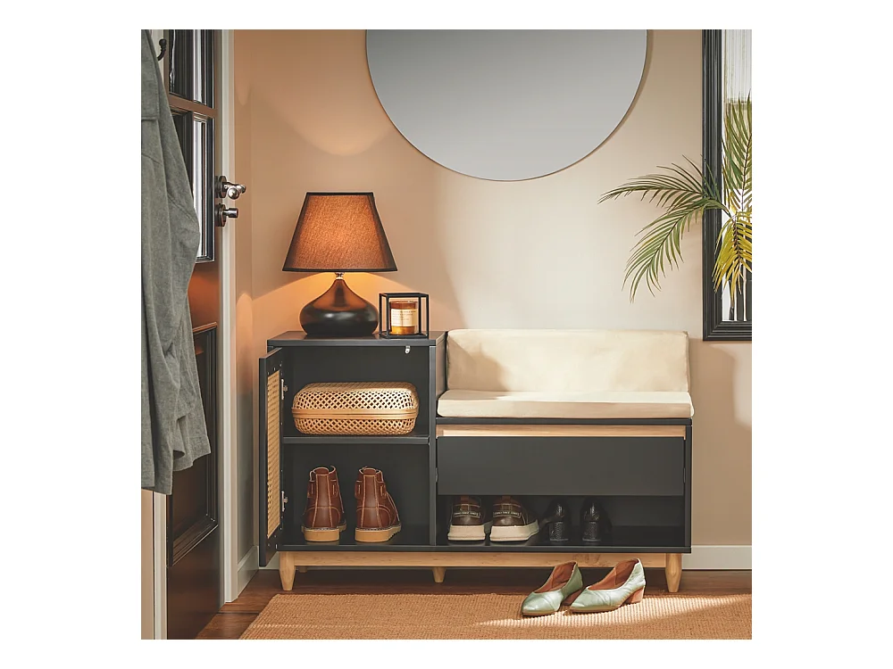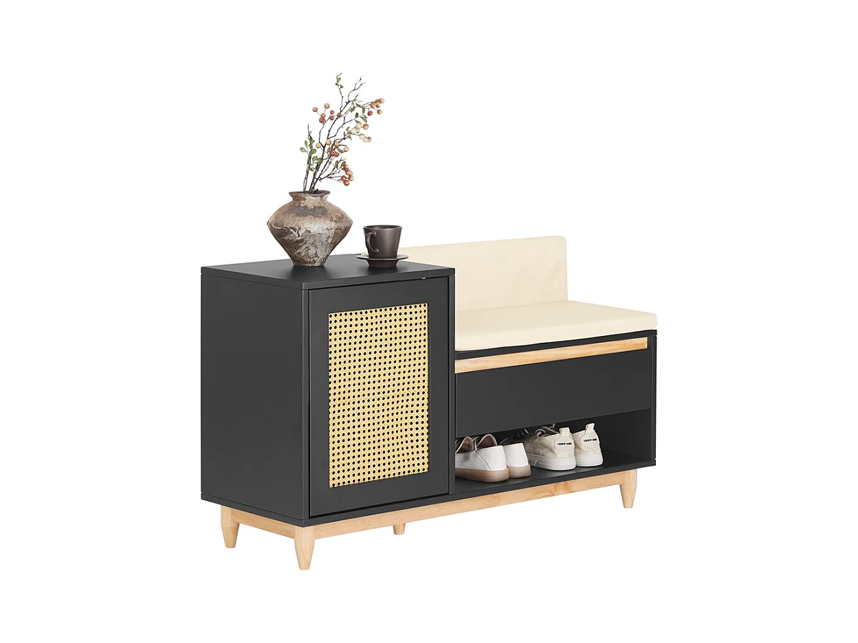Meuble à chaussures multifonctionnelle - avec un siège rembourré - grand espace de rangement - Noir
