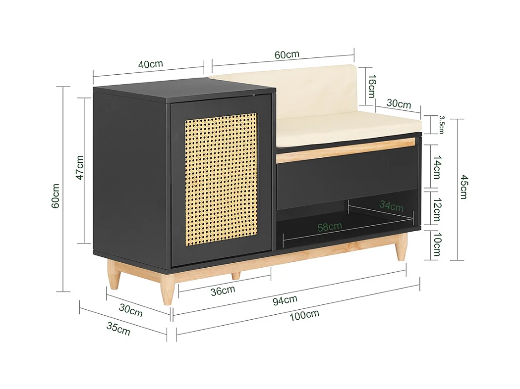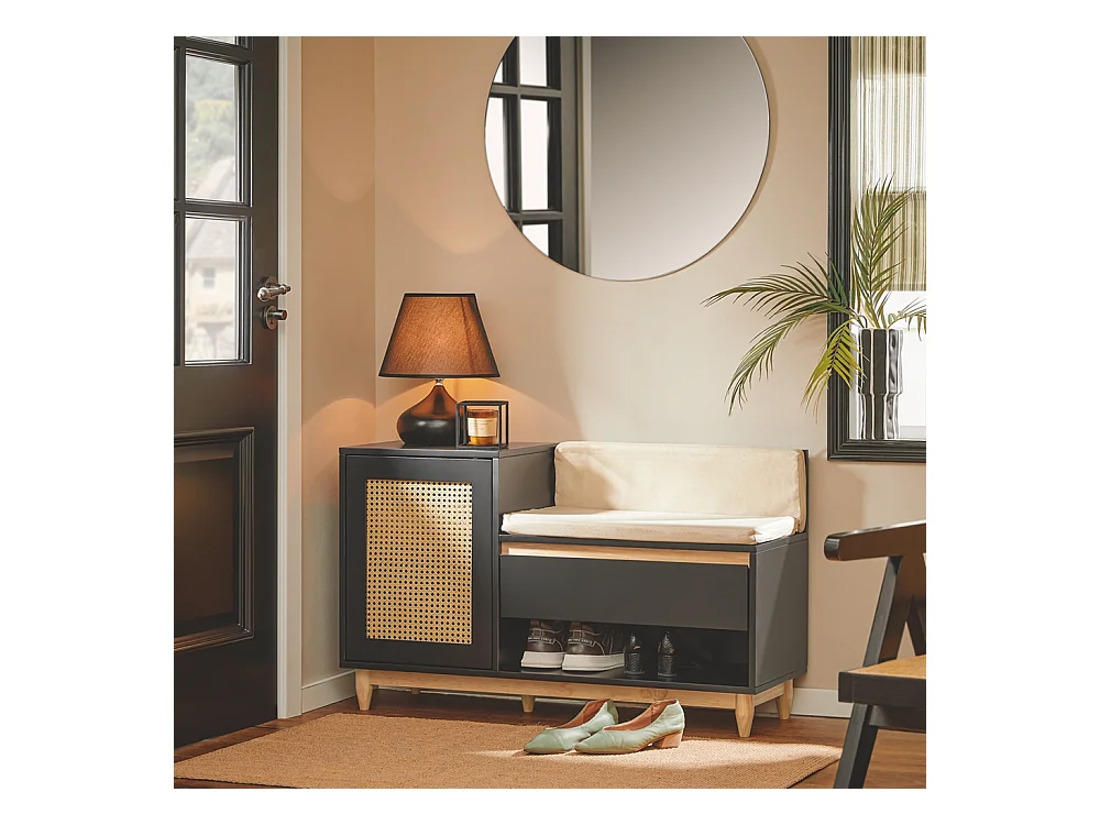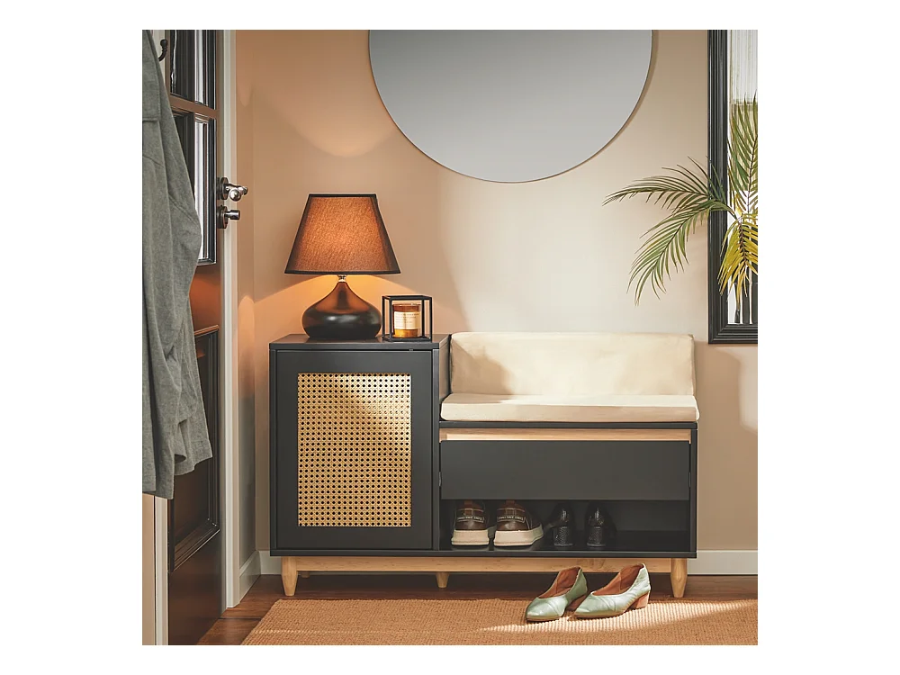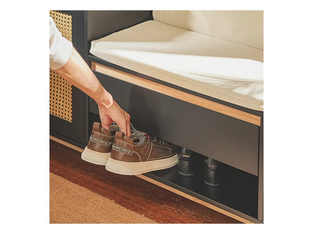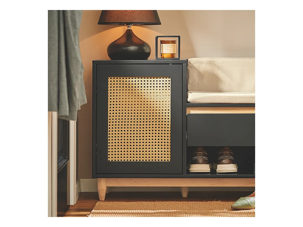 Meuble à chaussures multifonctionnelle - avec un siège rembourré - grand espace de rangement - Noir