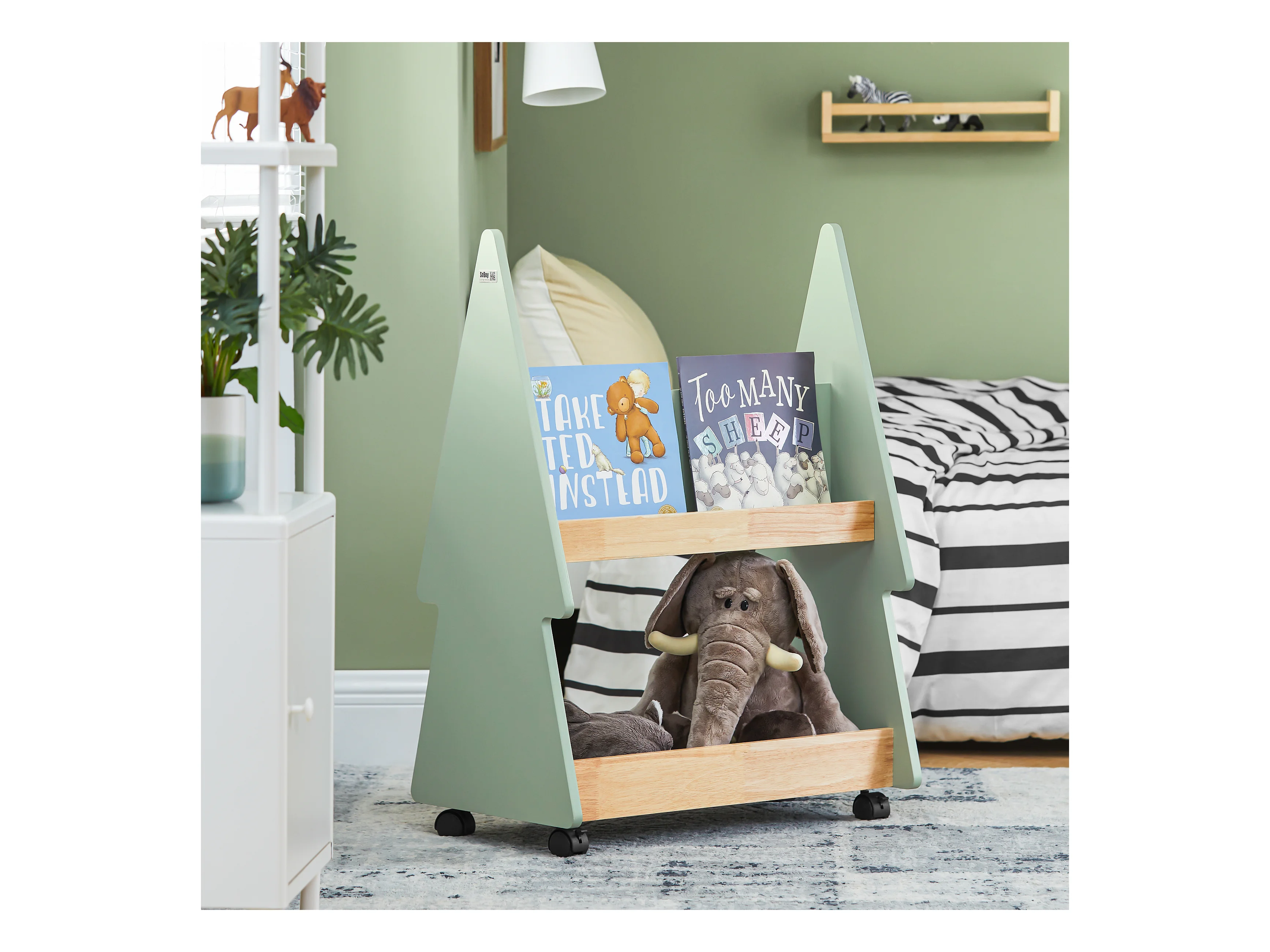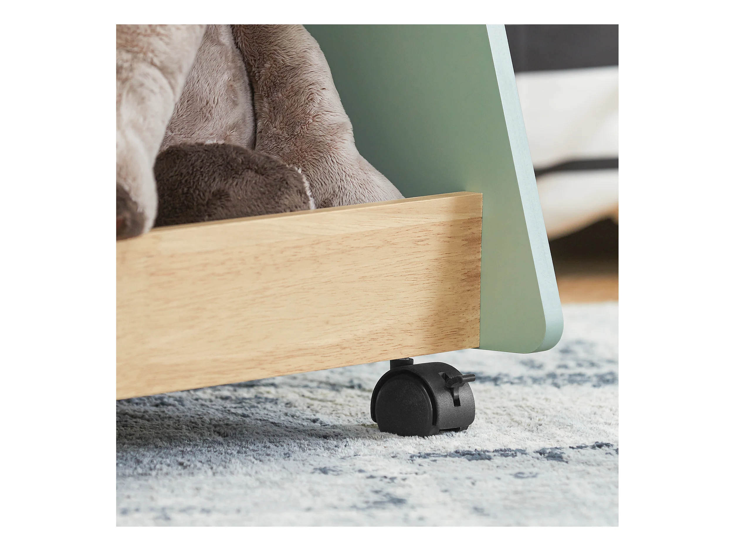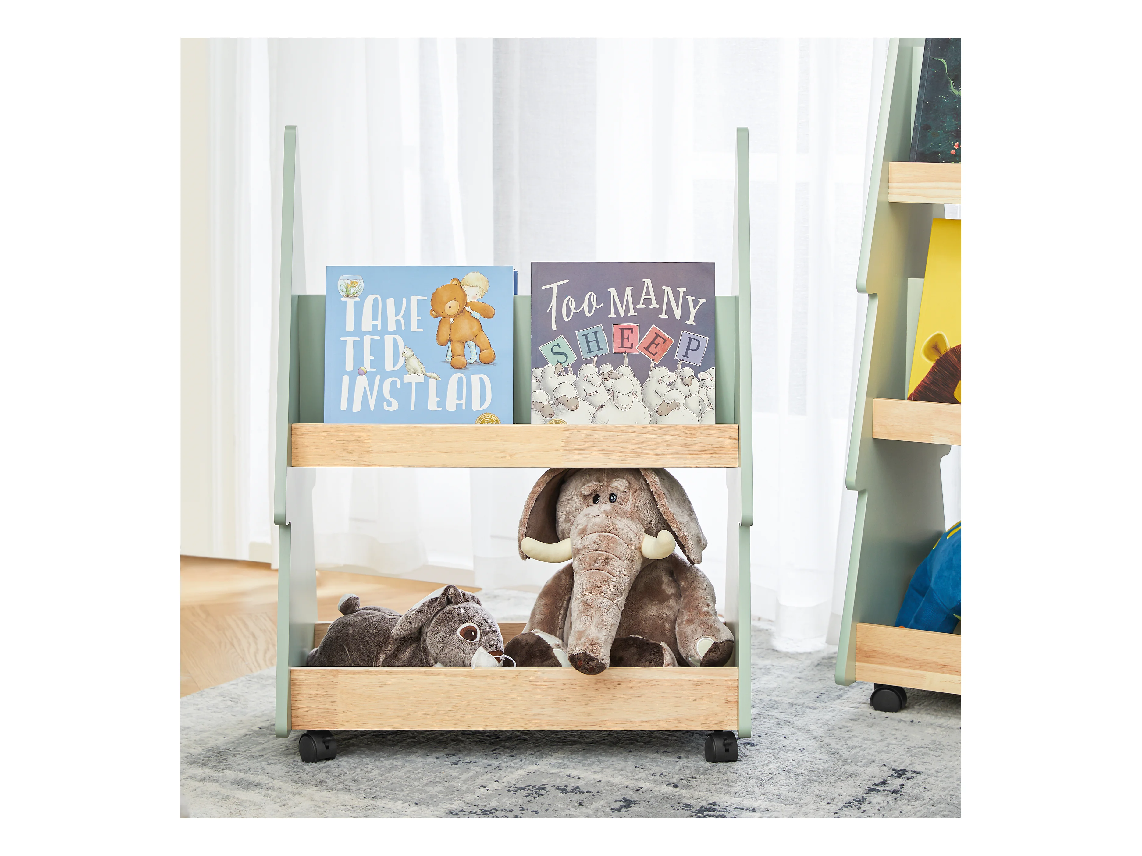 Bibliothèque enfant mobile sur roulettes - 4 niveaux rangement - bois de pin MDF vert