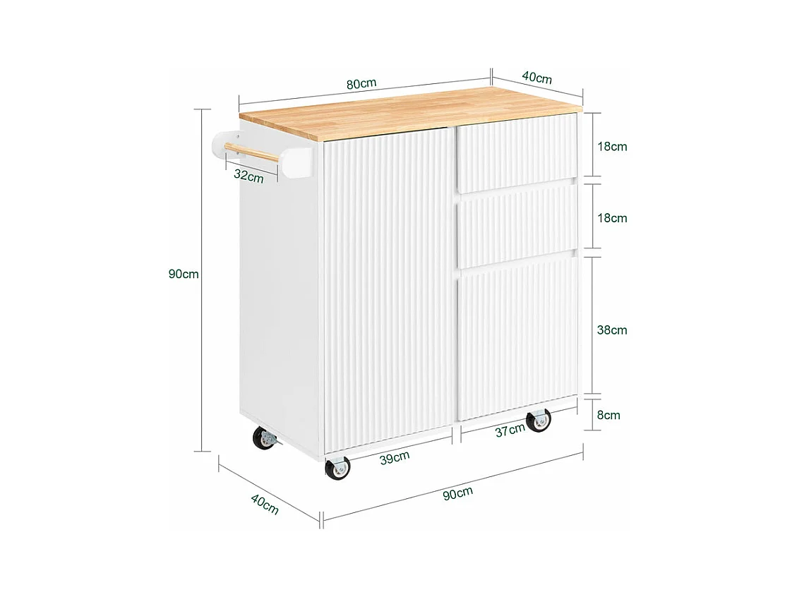 SoBuy Desserte de Cuisine à roulettes îlot Chariot de Service Buffet Armoire avec 2 Tiroirs, 2 Portes, Porte-torchon, 90x40x90 cm FKW124-WN