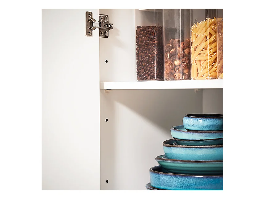 Buffet de cuisine haut avec 2 portes + 3 tiroirs + bureau extensible - 137 x 45 x 178 cm - MDF - blanc
