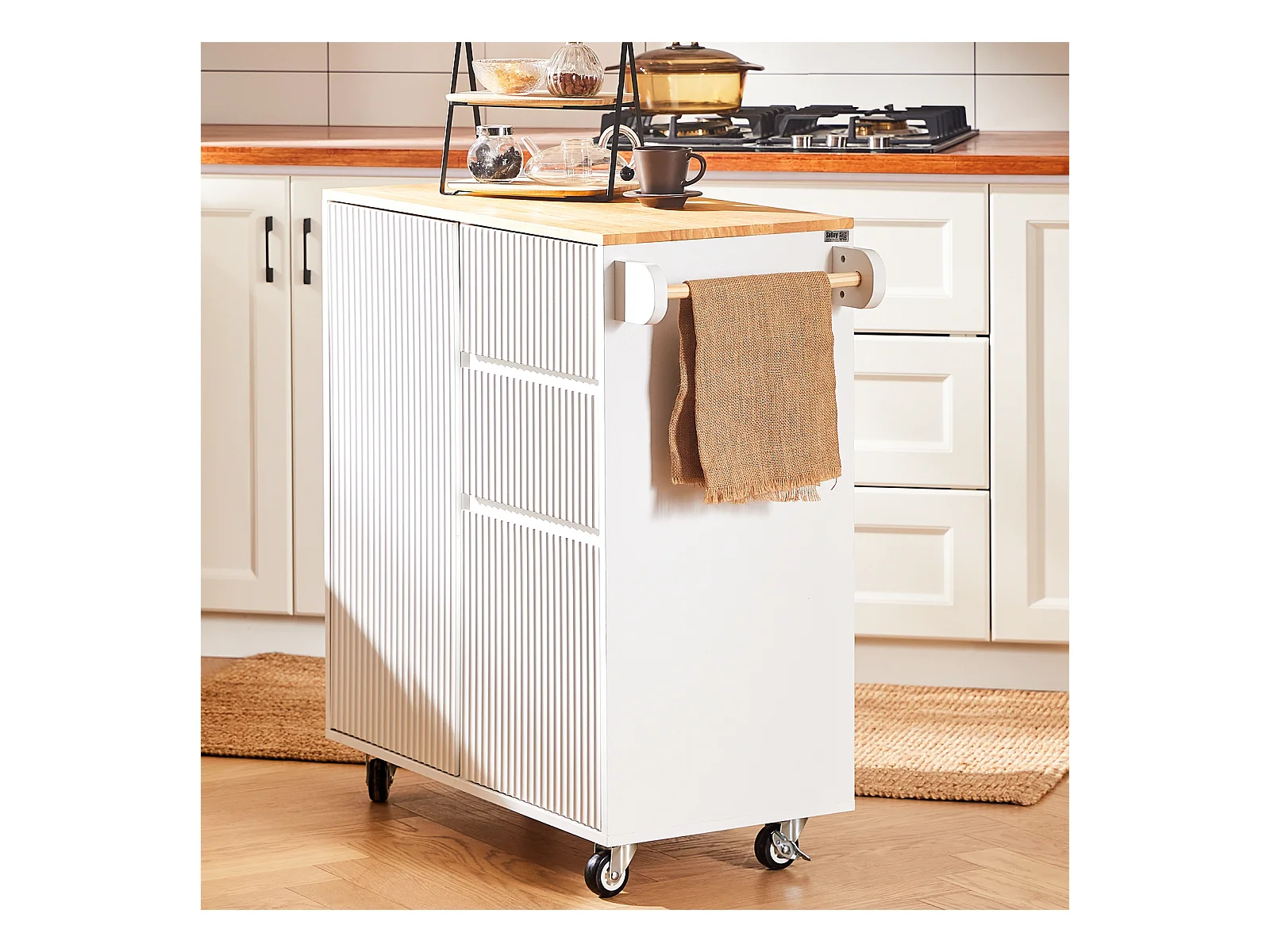 Desserte micro-onde à roulettes Meuble de rangement cuisine, FSB09-W