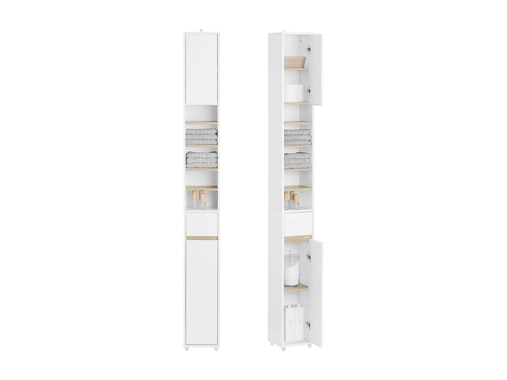 Rangement de salle de bain avec placards et étagères - Naturel clair et blanc - L47 x H184 cm - ERKANO