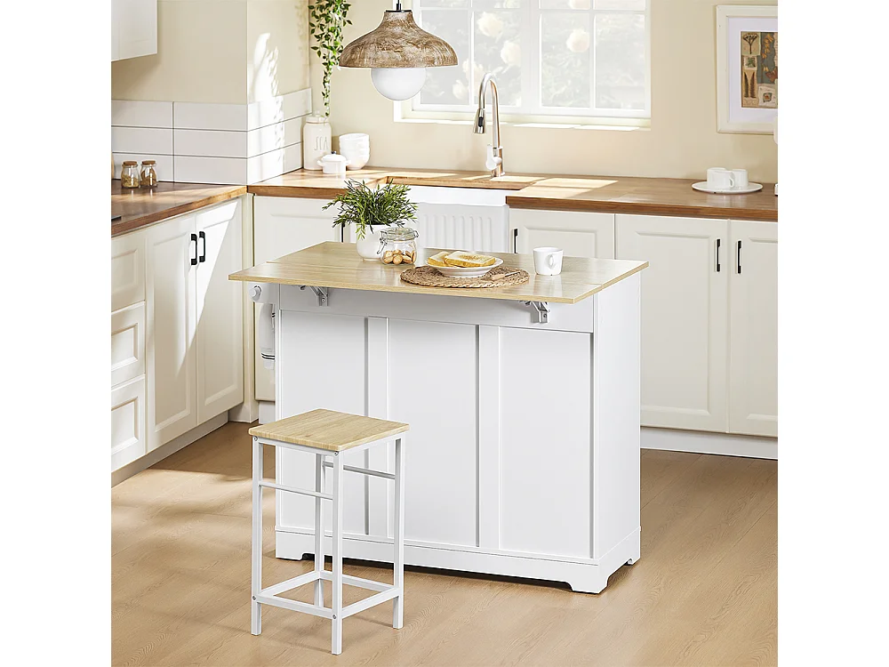 SoBuy chariot de cuisine à roulettes avec plan de travail extensible, 2 tiroirs et étagères réglables, blanc, L113 x P91 x H44-69 cm