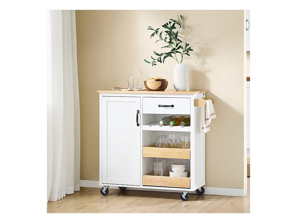 SoBuy Desserte de Cuisine Mobile avec Plan de Travail en Bois, Unité Autonome Blanche