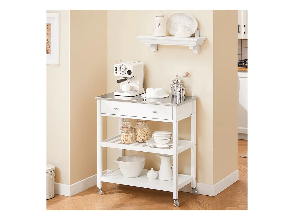 Meuble de Cuisine Desserte de Cuisine à Roulettes Table Roulante Meuble de Rangement, FKW74-WN