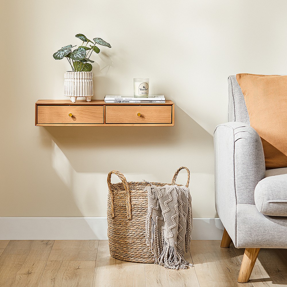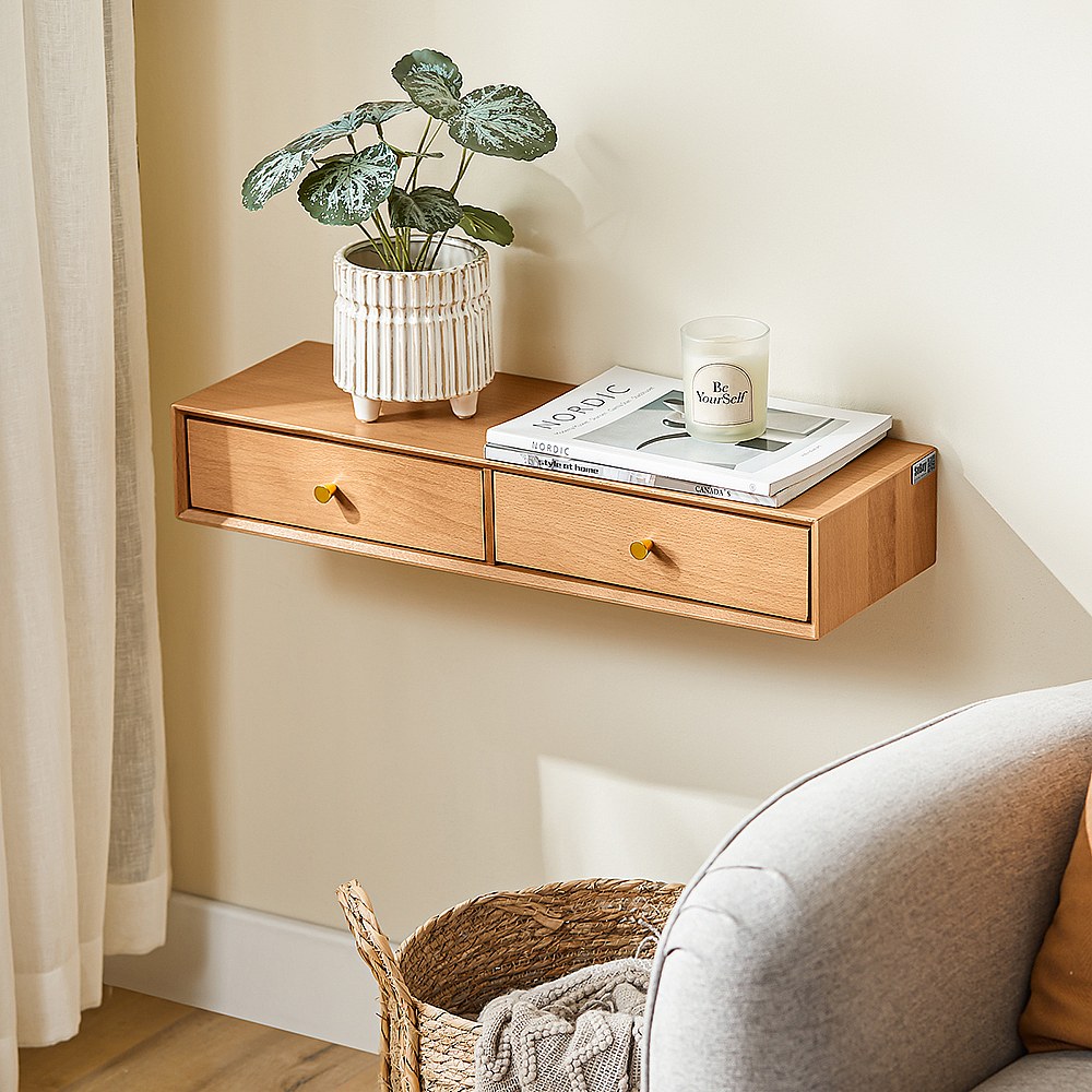 SoBuy Étagère Murale Flottante à 2 Tiroirs en Hêtre Massif Naturel